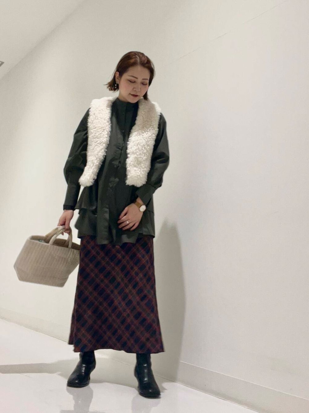 スカートはスッキリと着用ができ秋に着たくなるチェック柄が可愛いです◉
