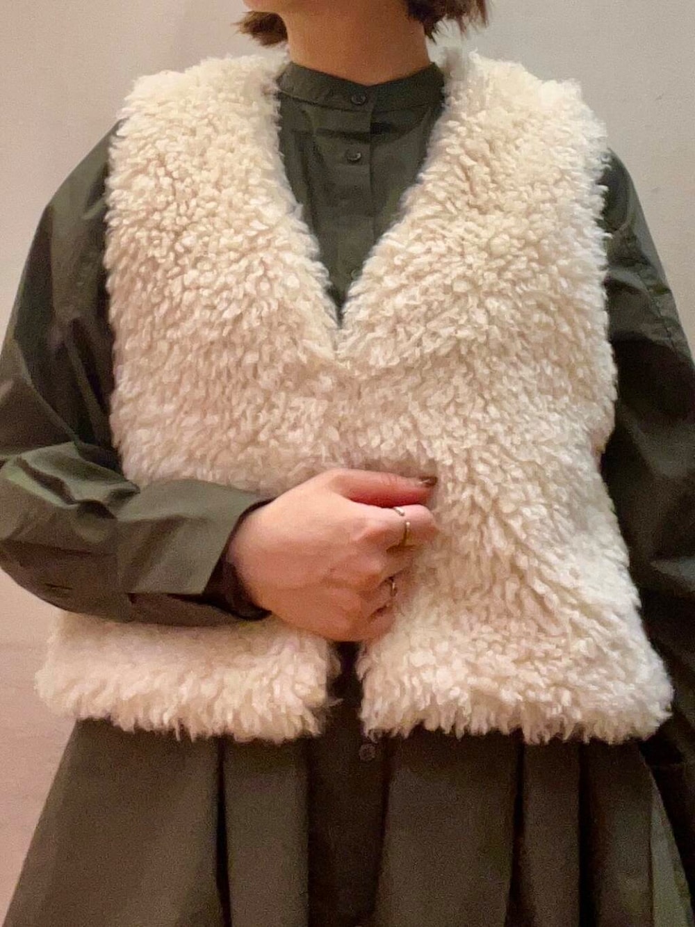 もこもこのバッグはボリューム感が可愛くラフな装いに◉