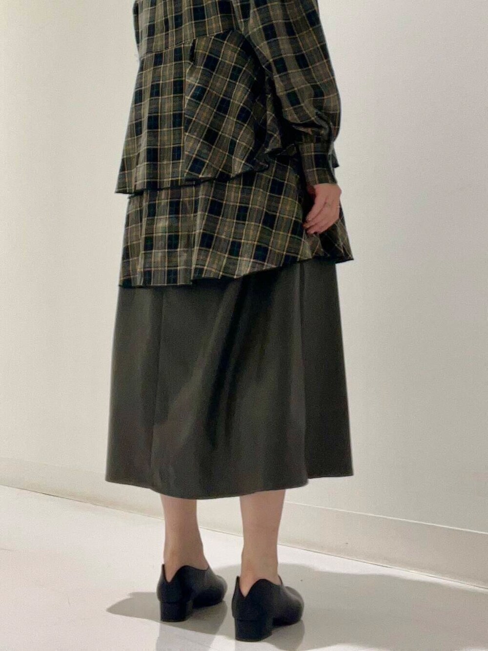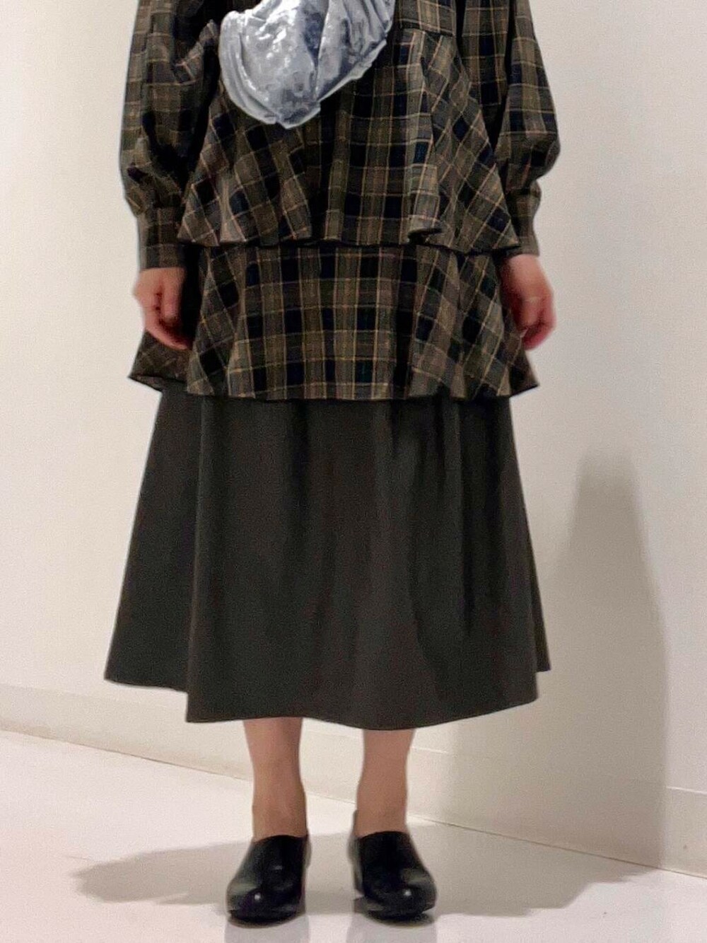 スカートは程よいボリューム感のアイテムで履きやすくボリューム×ボリュームであわせ足元はスッキリとしたシューズを合わせました‼︎