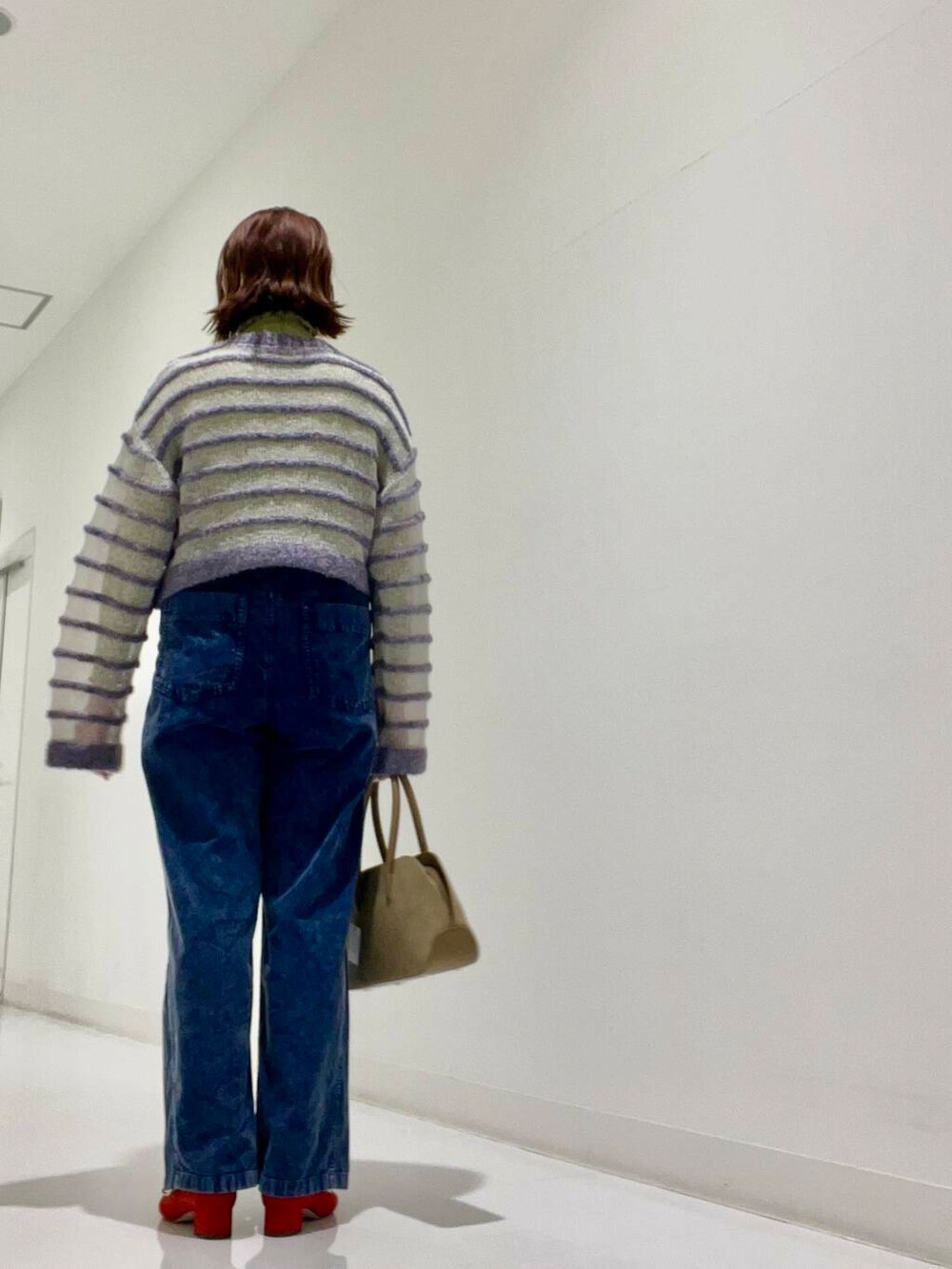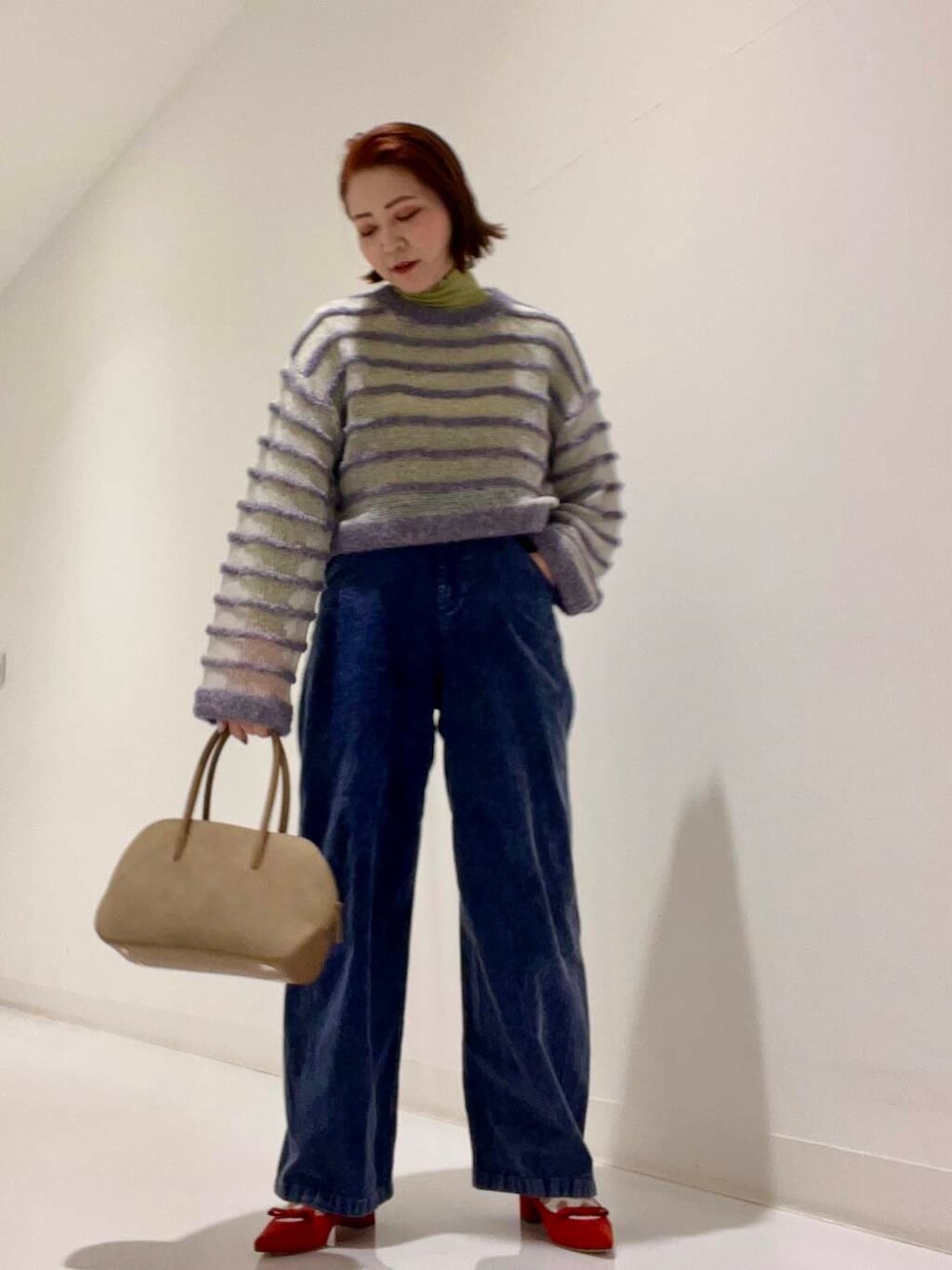 ポイントに足元にREDのパンプスを合わせました‼︎シューズはジャストサイズでリボンがアクセントになります‼︎