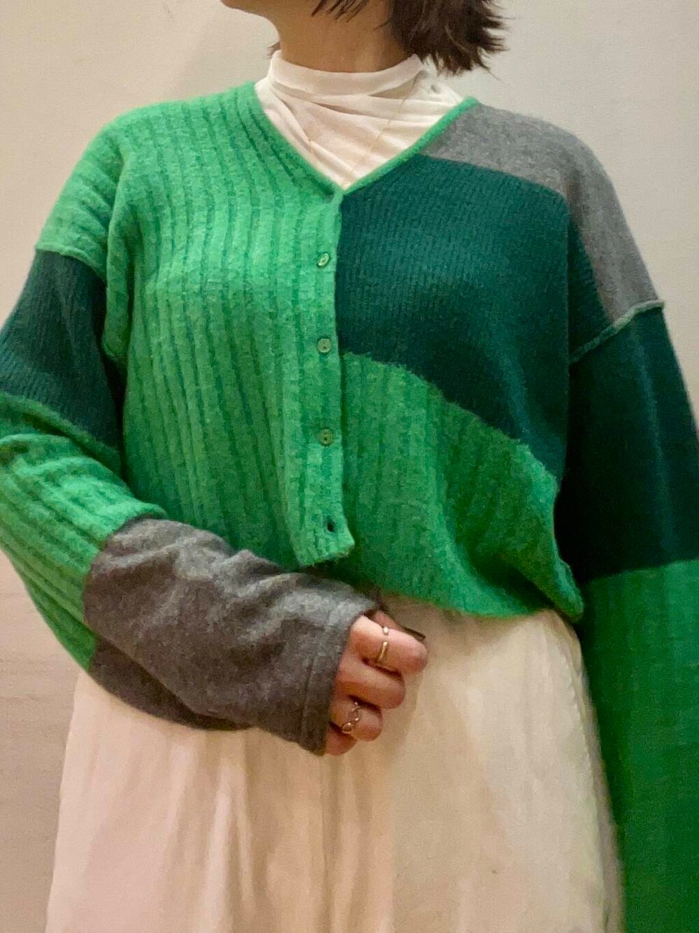 カーディガンはオーバーサイズでコンパクトな着丈なのでバランスご取れやすく色味が可愛いです◉