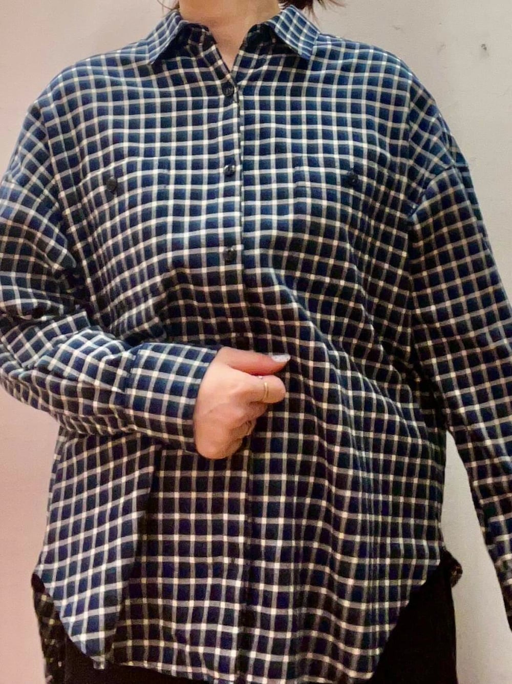 シャツはオーバーサイズですが大きく見えない素材でレイヤードや腰巻きにも◉