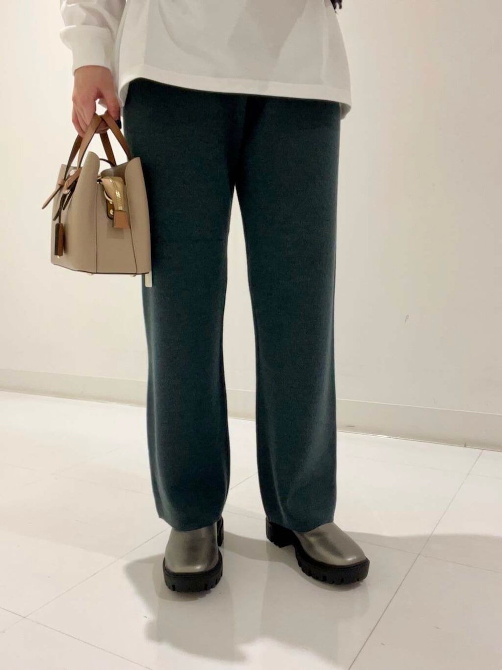 ニット素材ですが、下半身のラインをあまり拾わないので挑戦しやすいかと思います◎