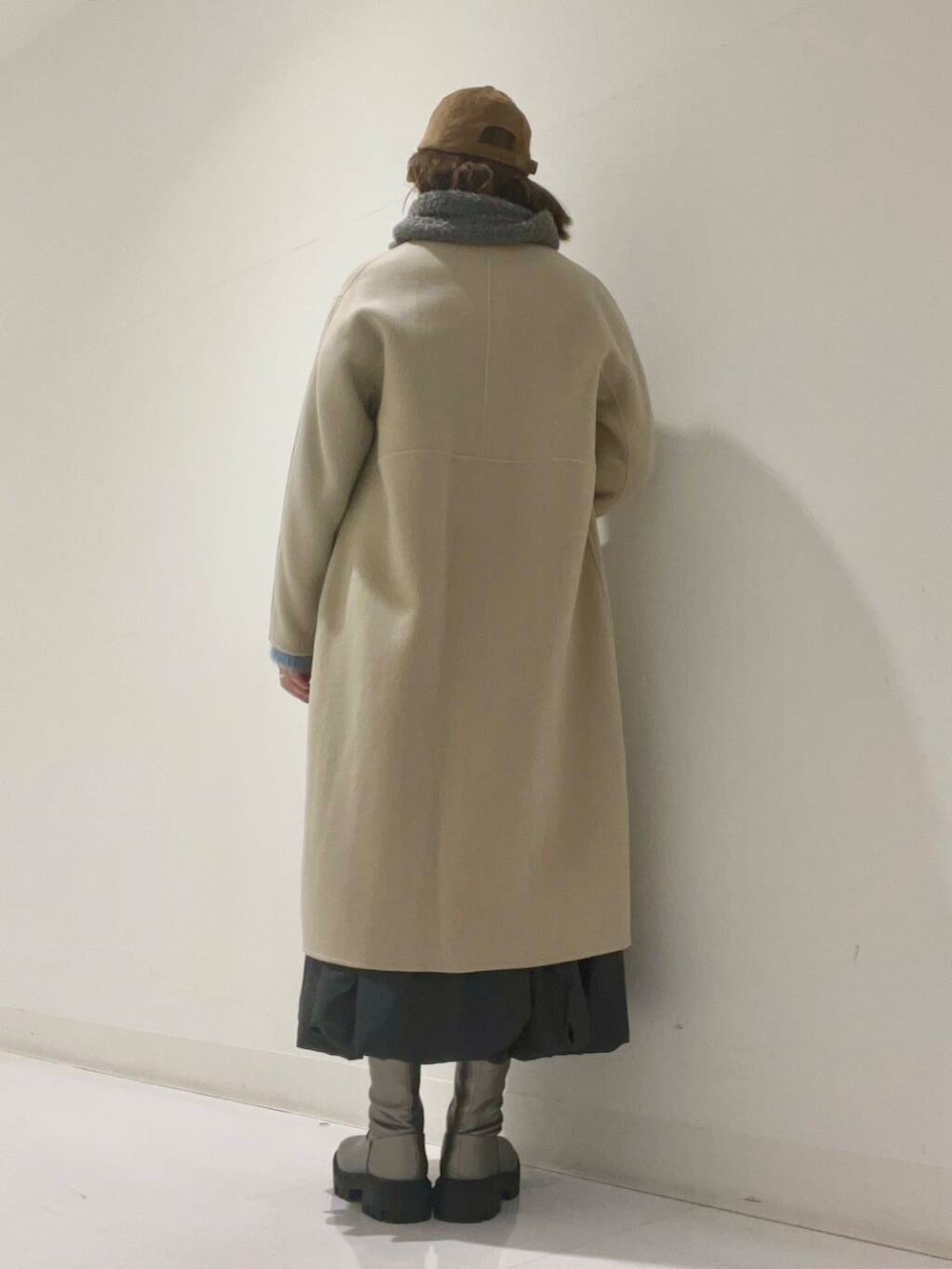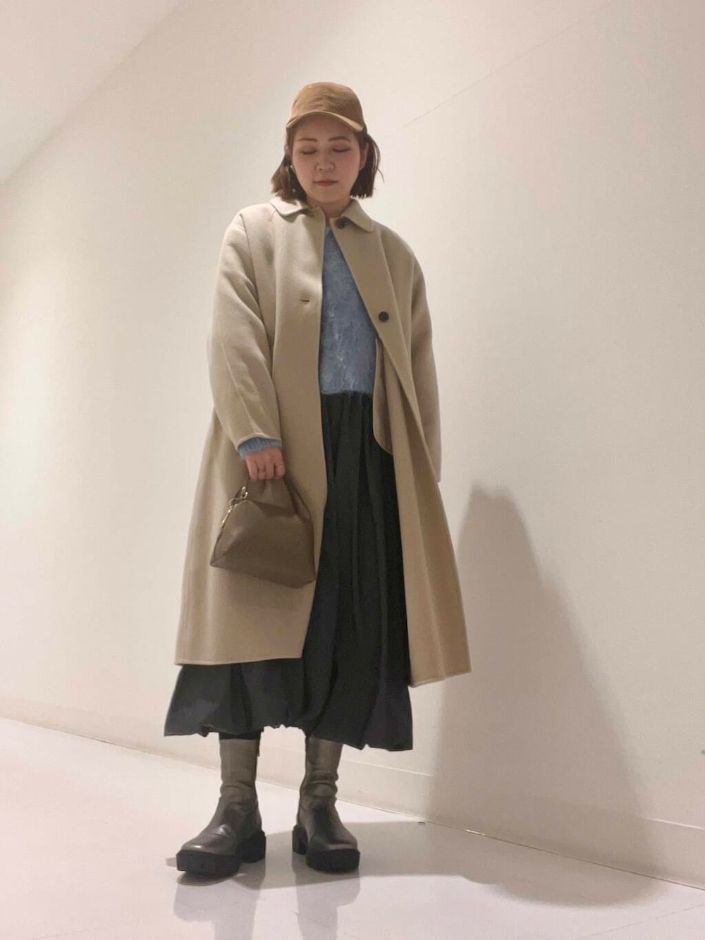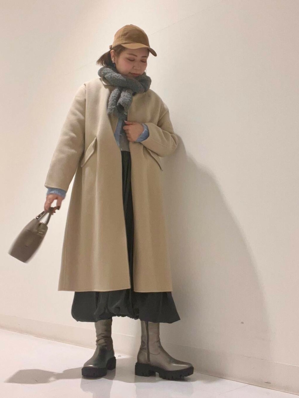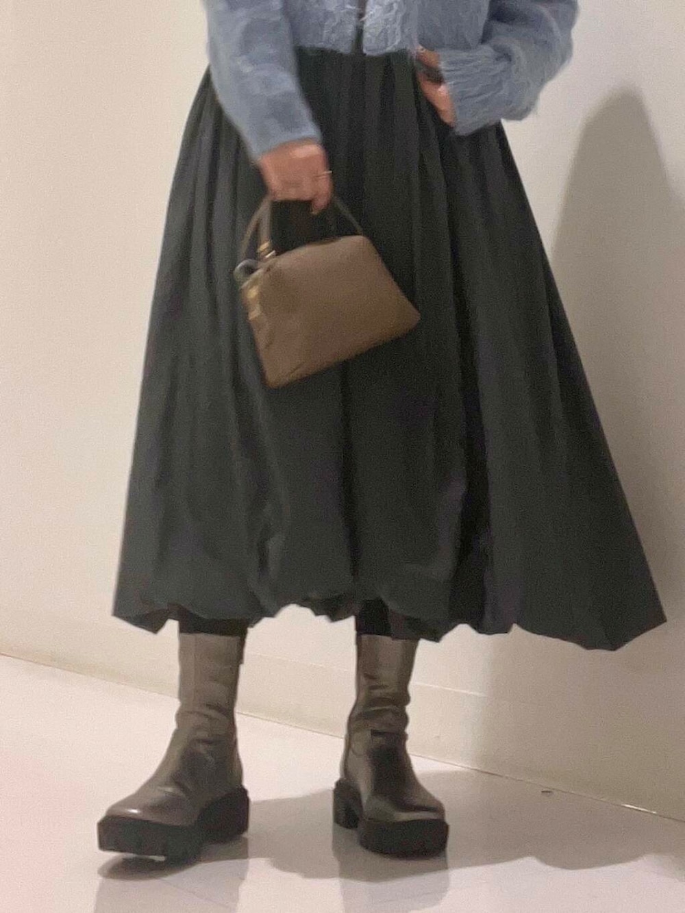 バルーンワンピースはとても人気でトップには厚手ニットを合わせ暖かコーデに◉