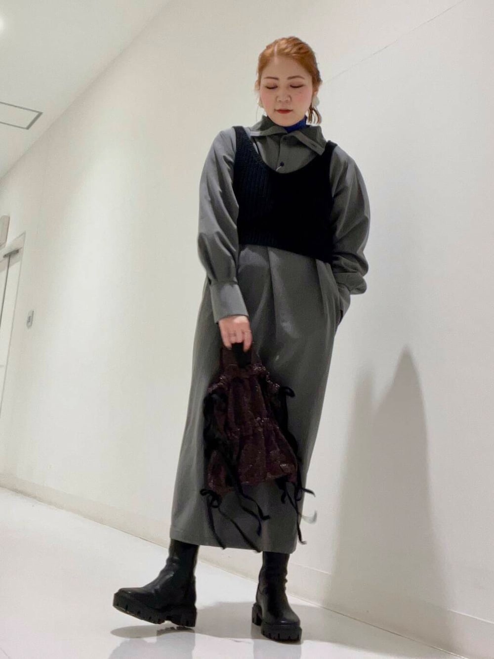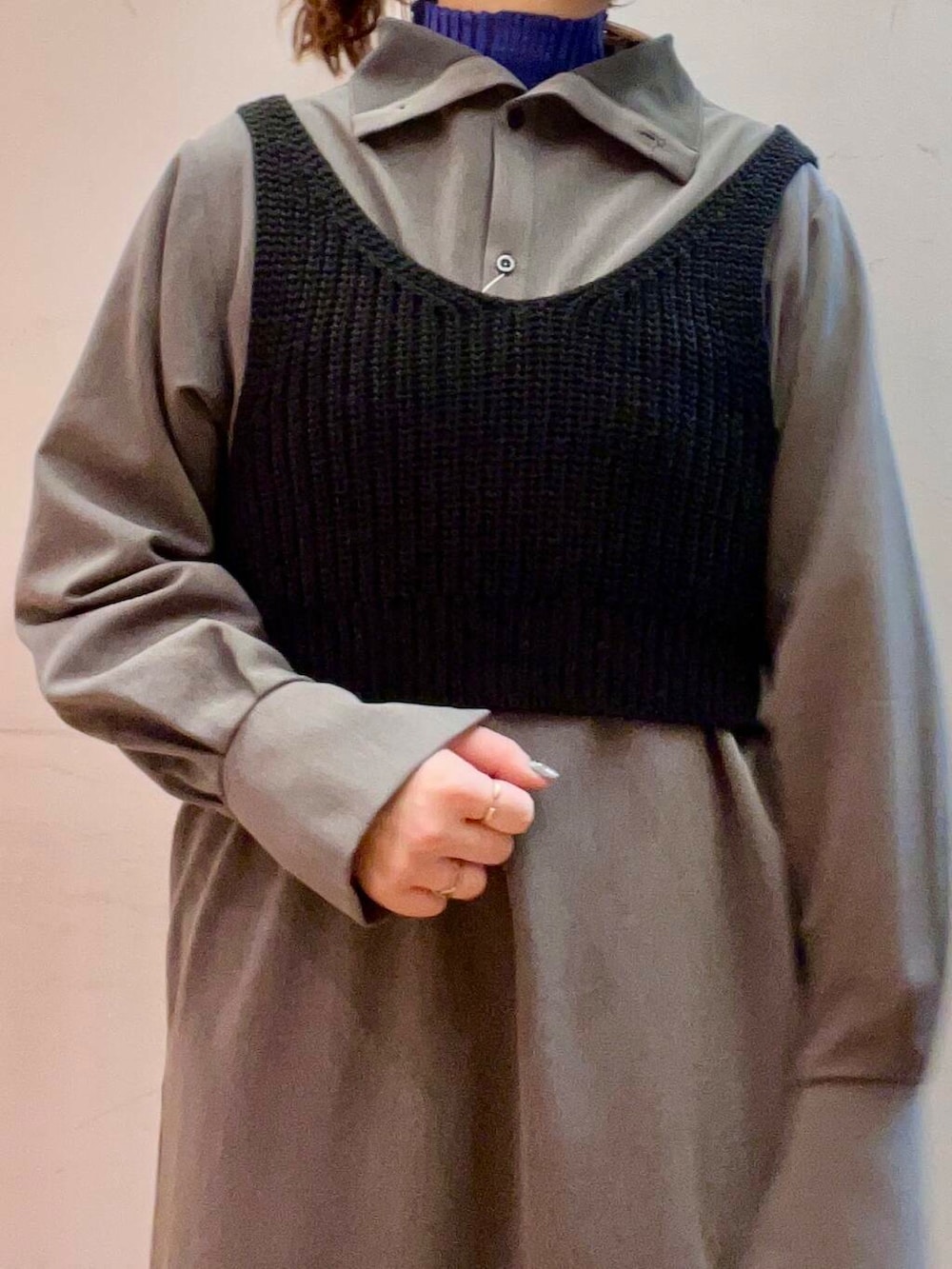 ワンピースはざっくりニットの中に合わせて頂いたり中物にニットを合わせたりとアレンジもしていただけます◉