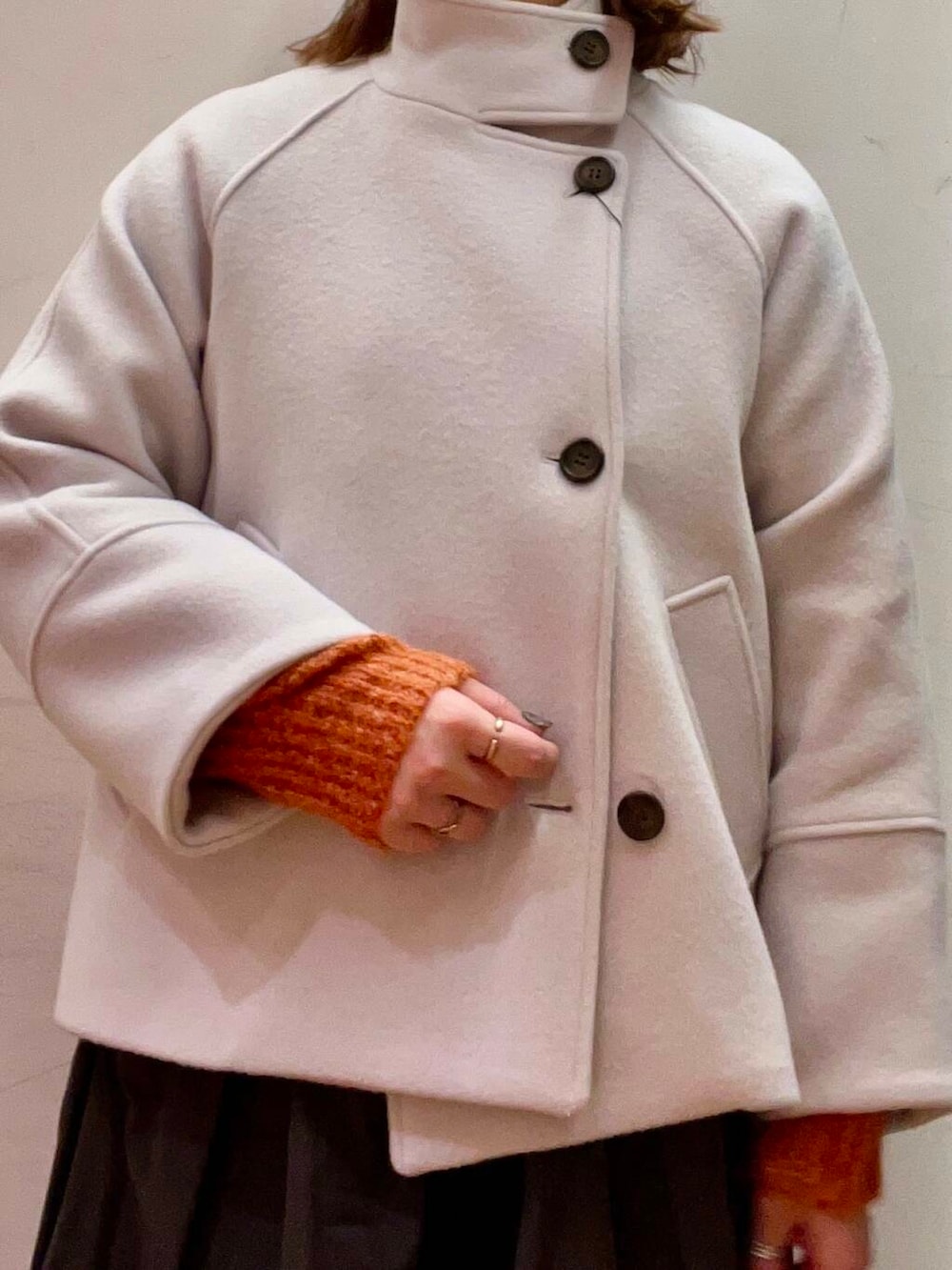 スタンドカラーコートは重量感も抑えられふっくらとしたシルエットご可愛いです◉