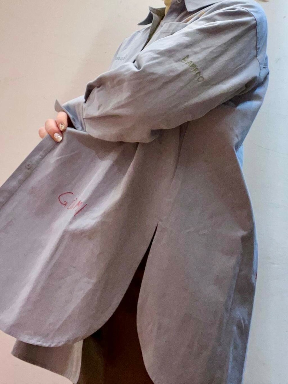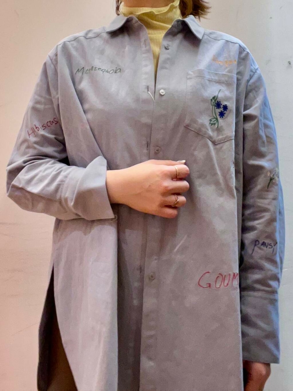 シャツは刺繍がポイントでスリットが深めなのでinをしなくても合わせて頂けます◉