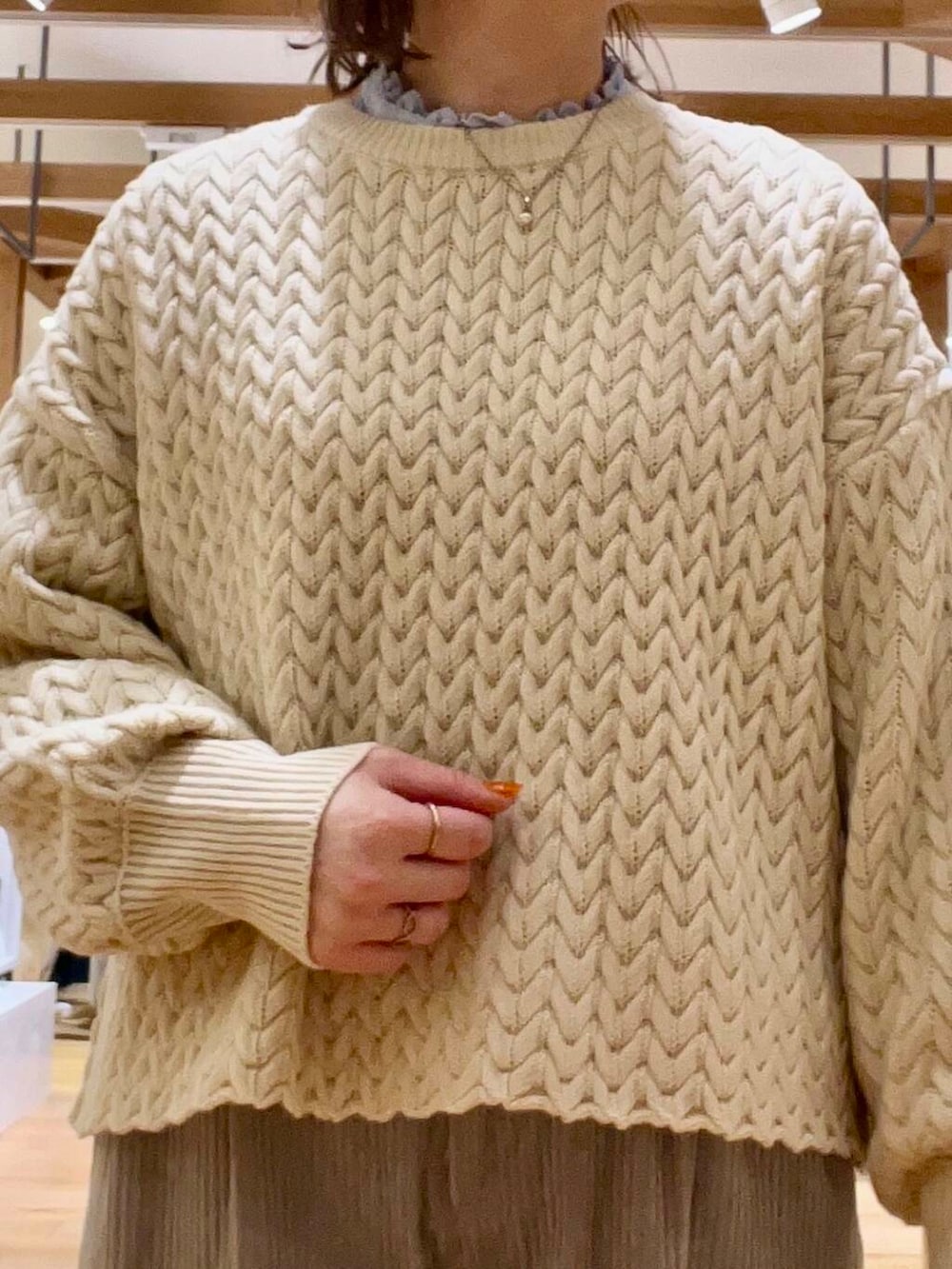 ニットにはフリルブラウスを合わせてポイントにしました!