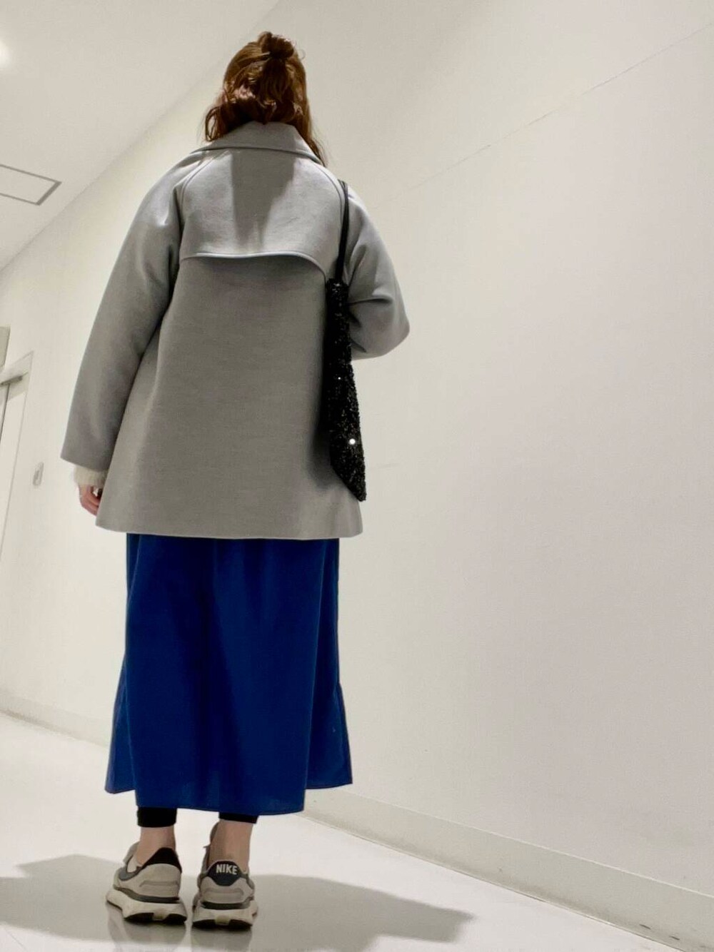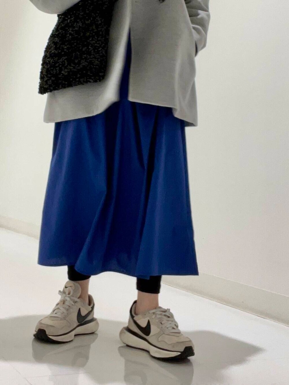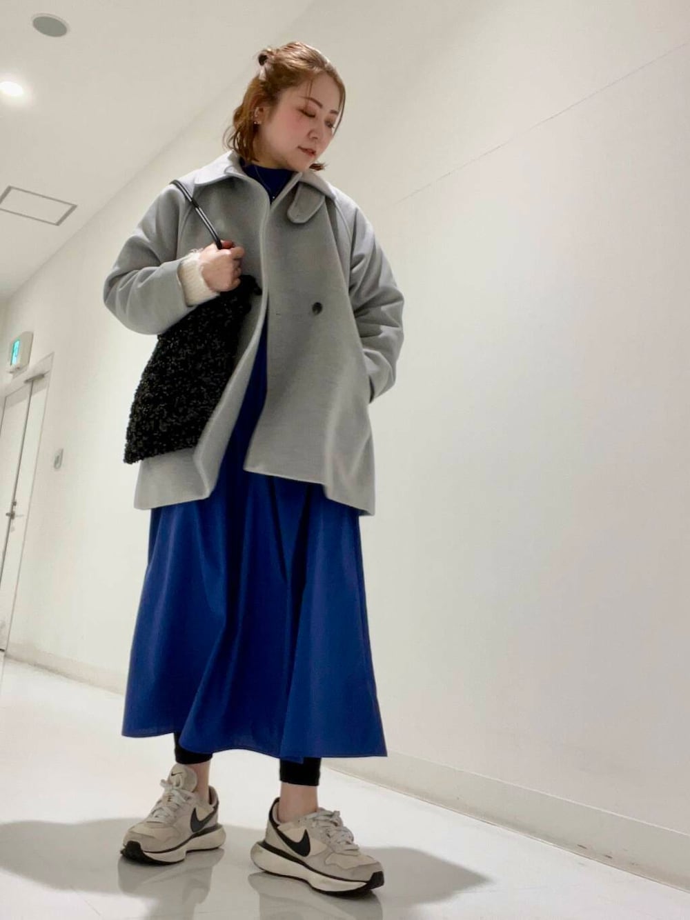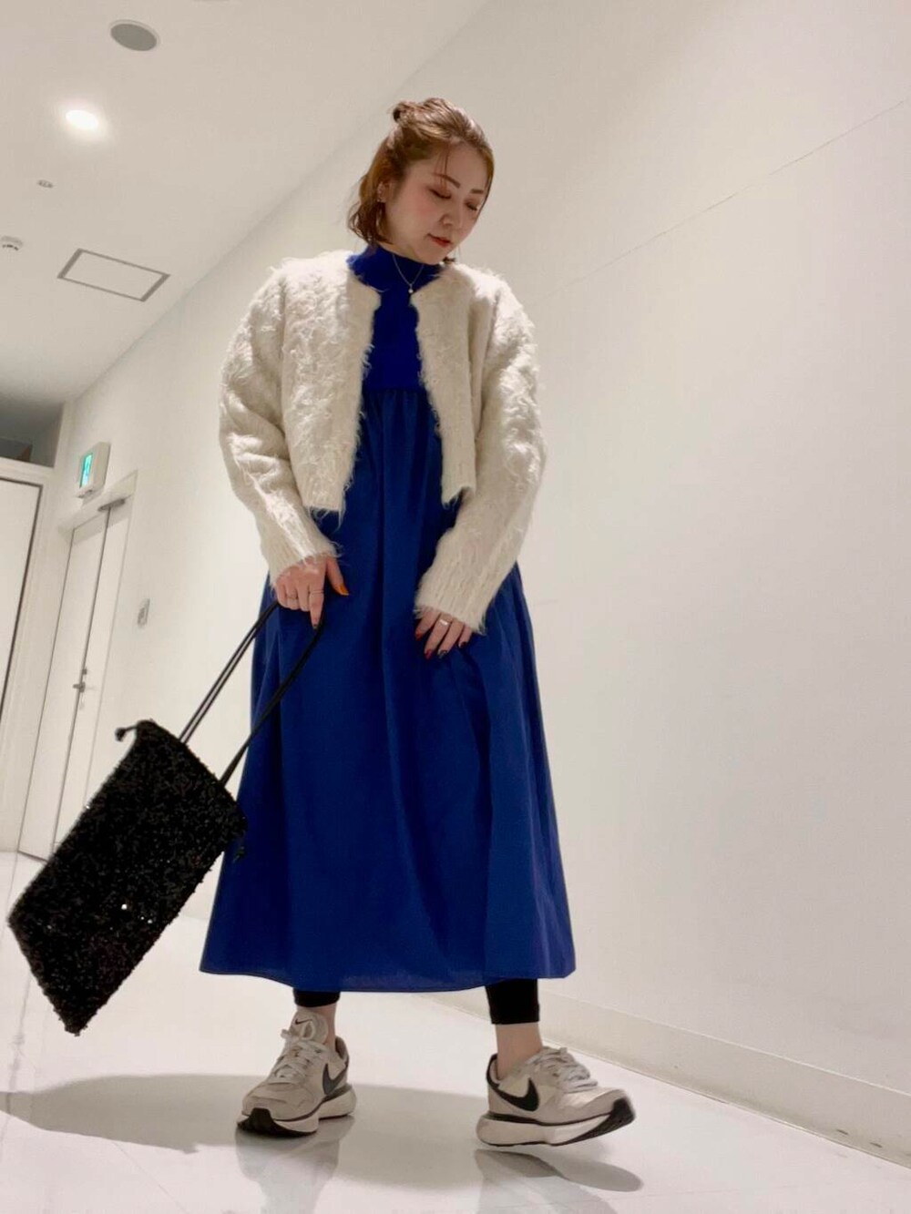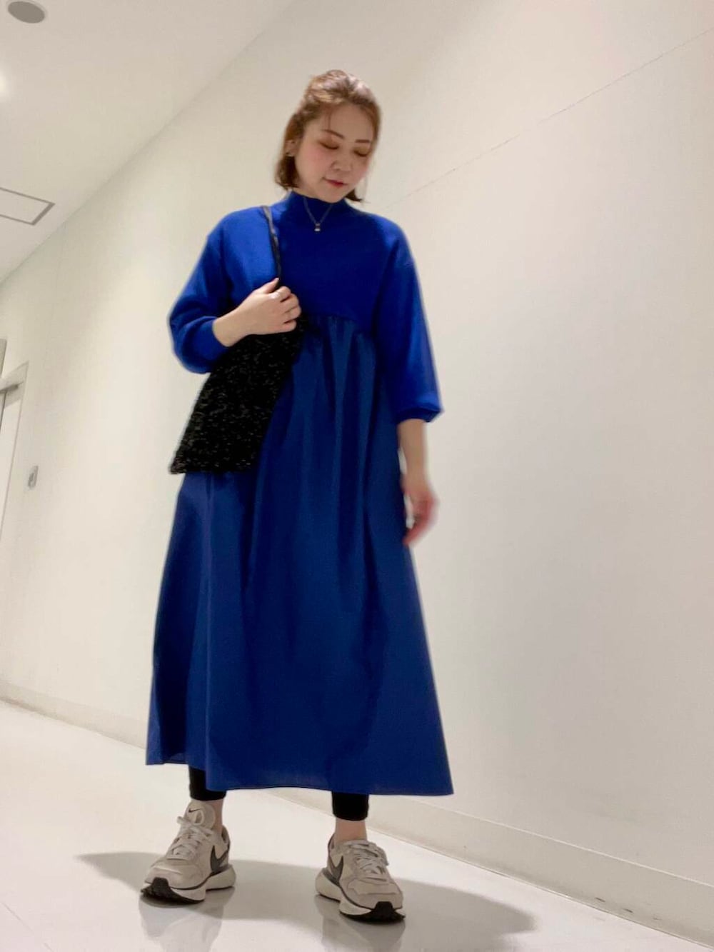 ワンピースは切り替えが高めの位置でスッキリ着用ができブルーがコーディネートのポイントになるカラーなのでオススメです◉