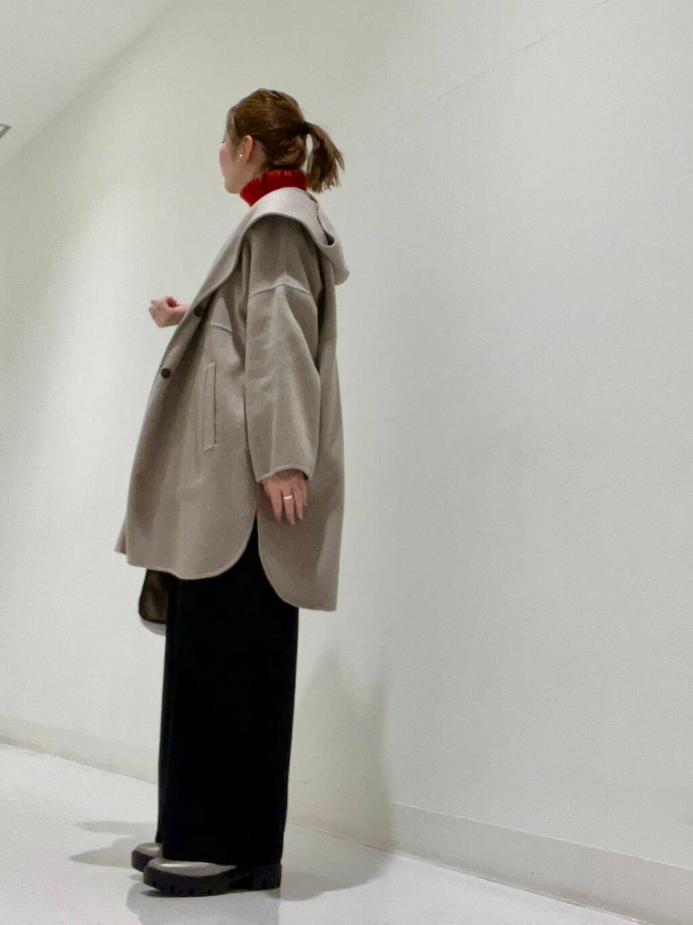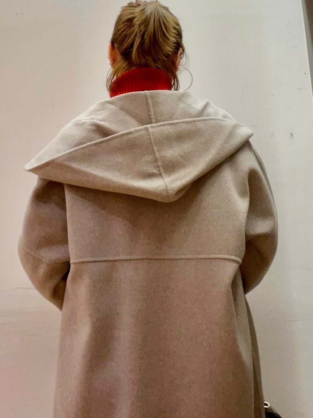 コートは軽くフーディーが大ぶりでスッキリ着用ができます◉