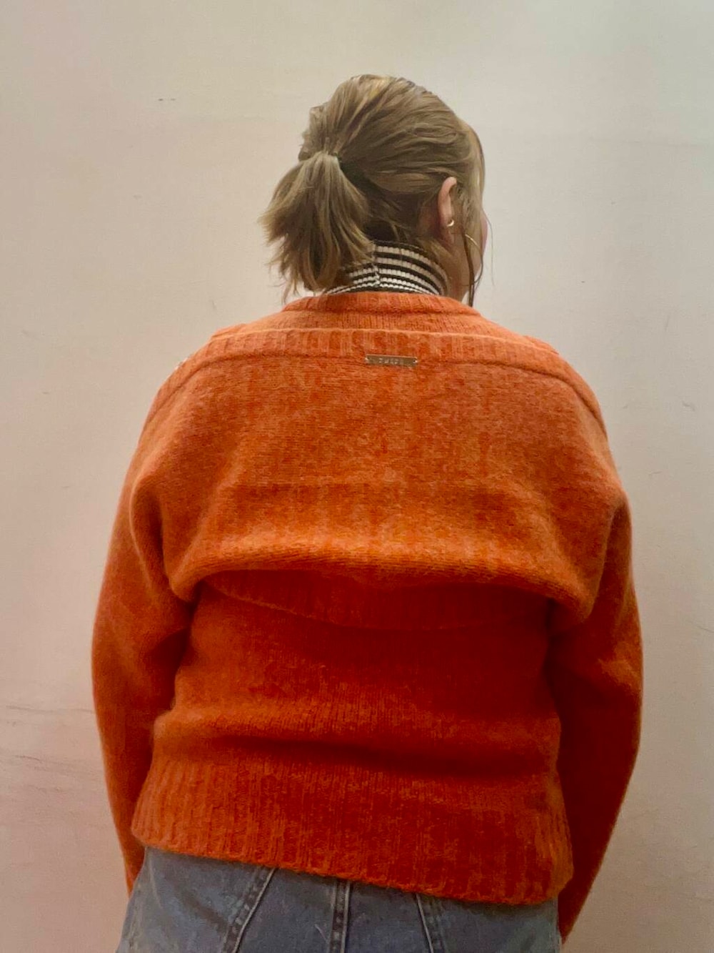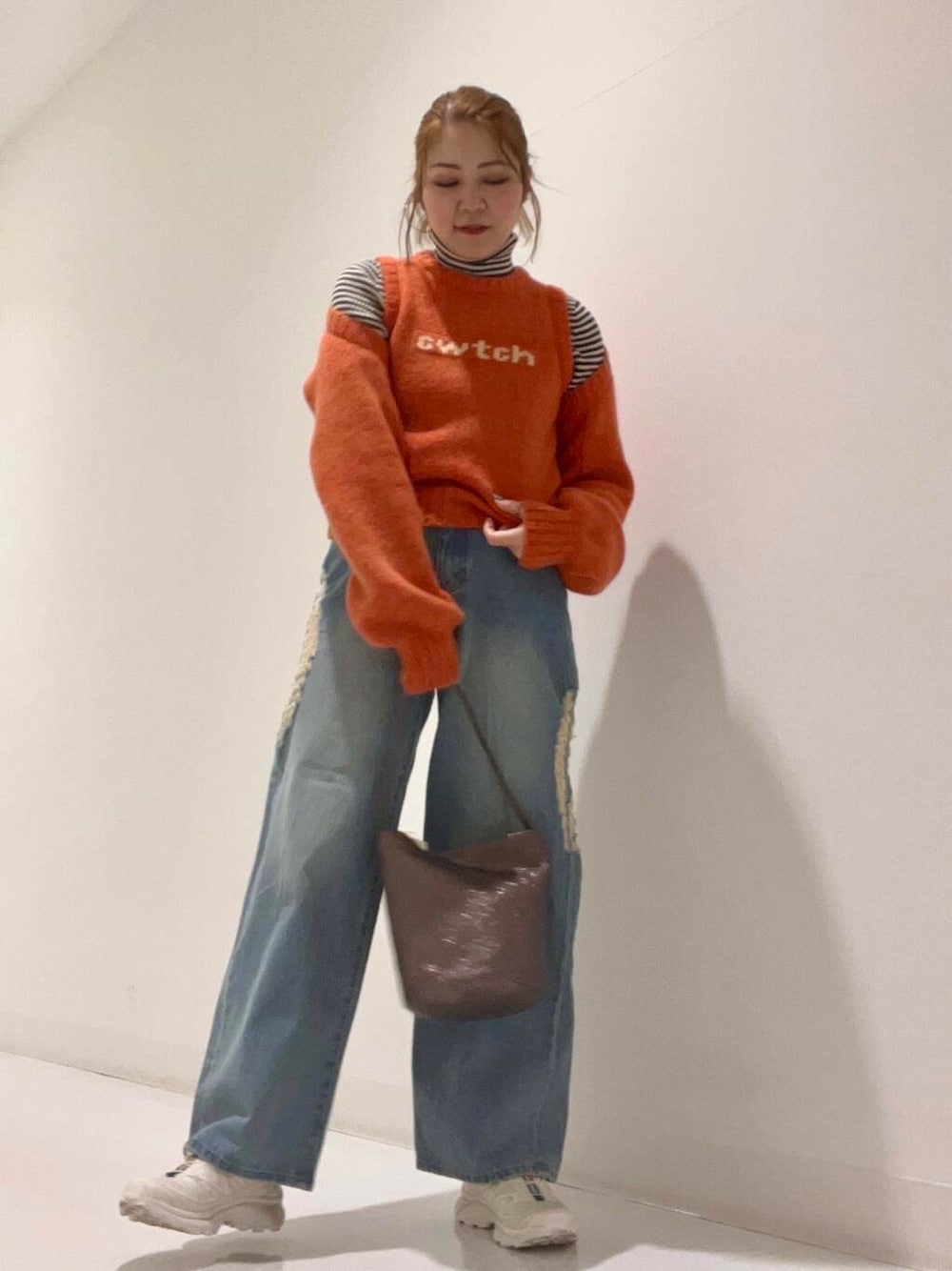 中にはオレンジのロゴニットをポイントに、暖かく一捻りあるオススメアイテムです◉