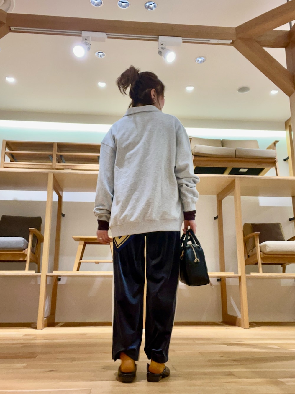 トラックパンツは、ベロア素材で履きやすくネイビーは大人仕様なカラーで取り入れやすいです◉