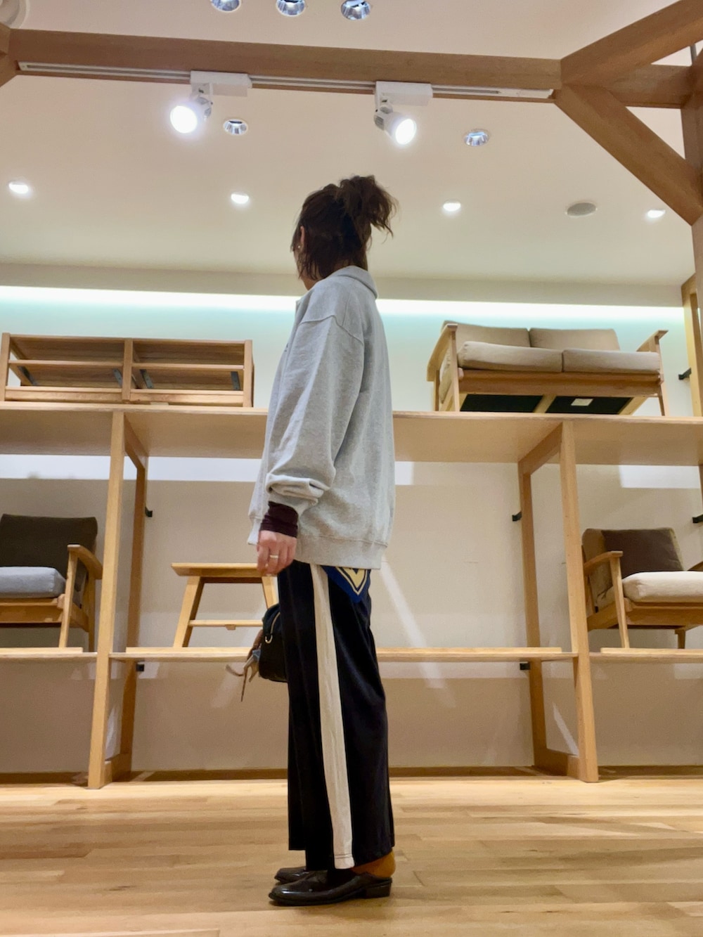 ゆるいシルエットにシアーなトップスを合わせて袖をまくりポイントとして‼︎
