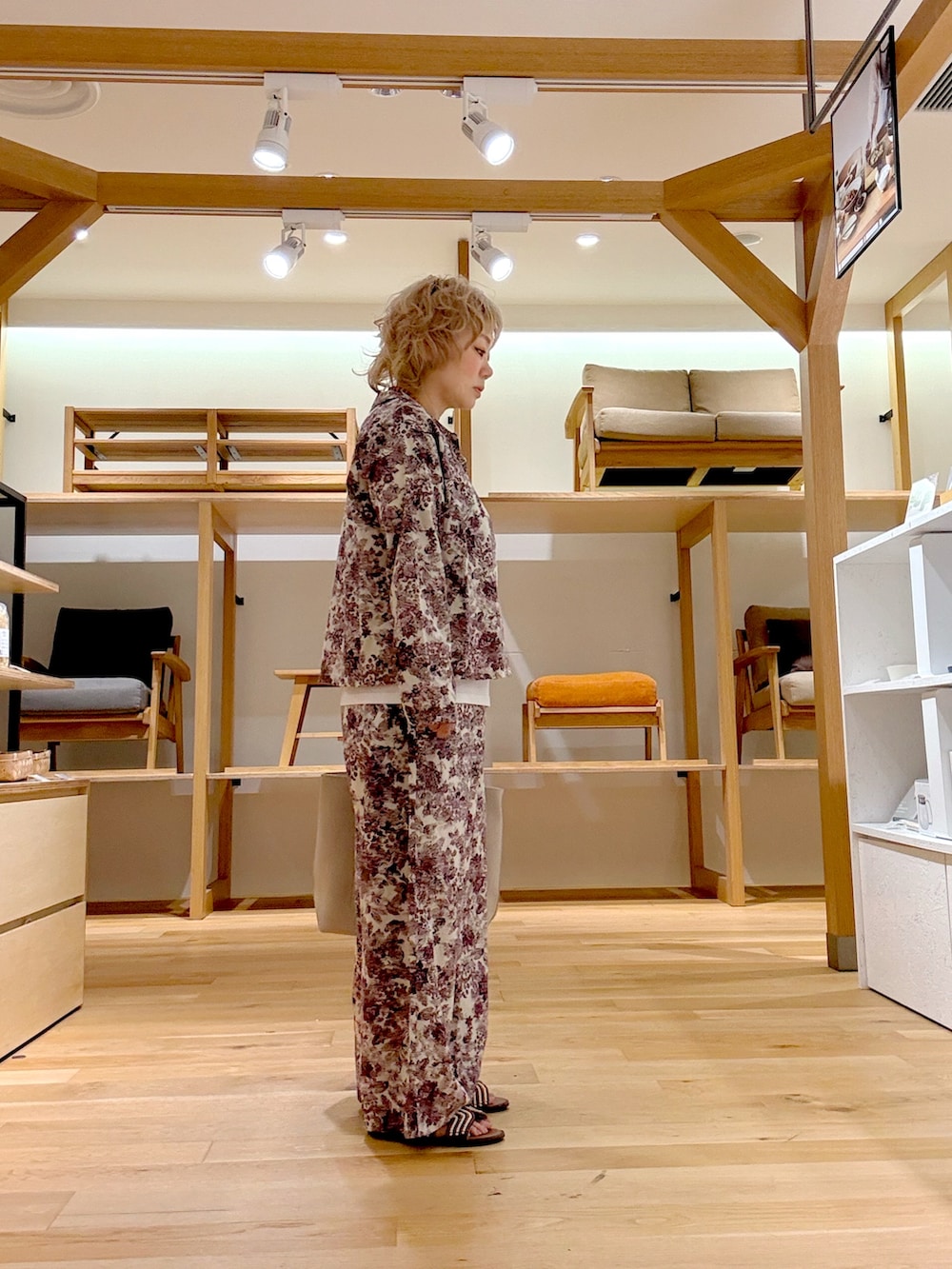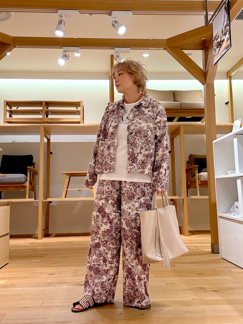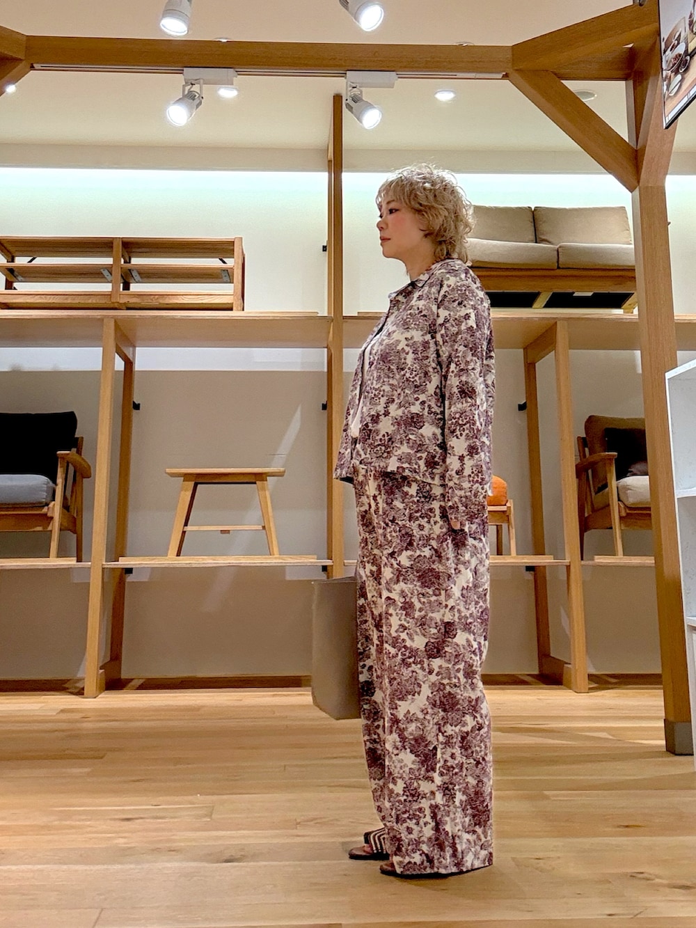 素敵な柄のシャツとパンツ、カラーもキレイで履き心地もよいです。Tシャツと合わせてカジュアルに着ました。楽ちんなのにキレイ見えセットアップです!