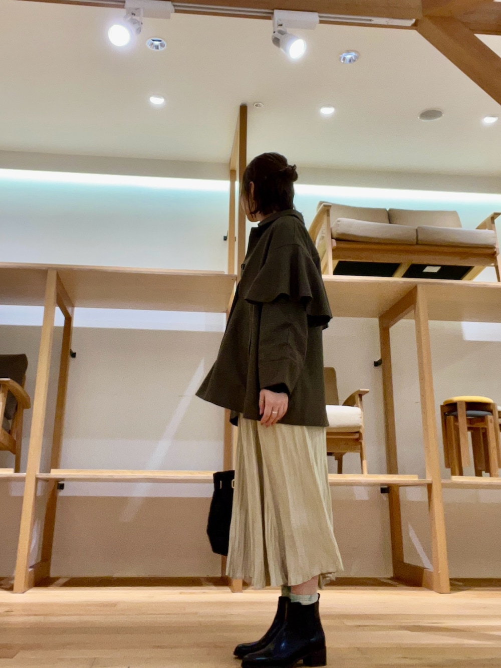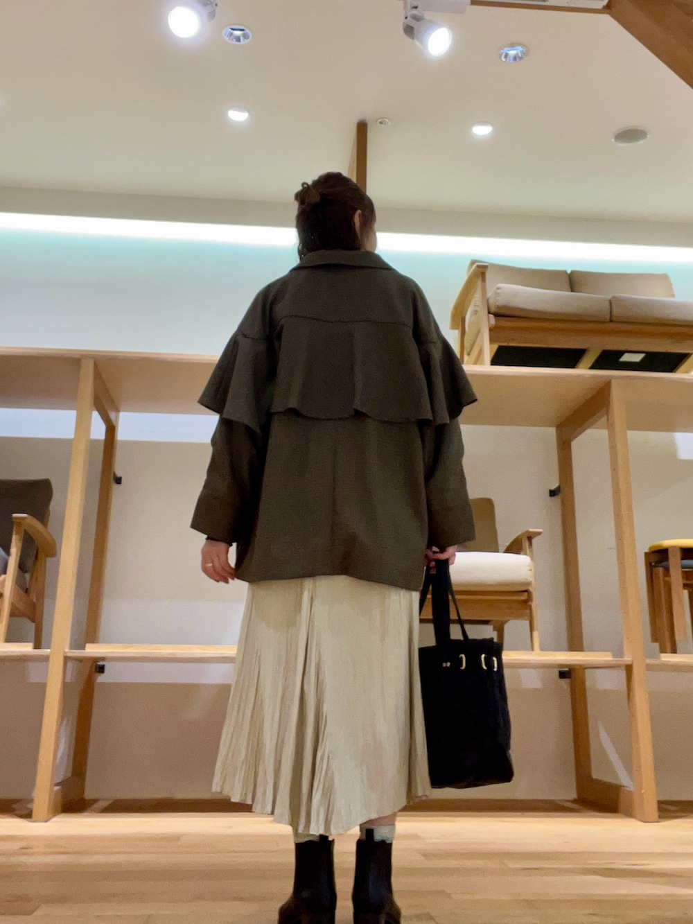 ランダムな長さのスカートは動きがありショートブーツも映えます‼︎