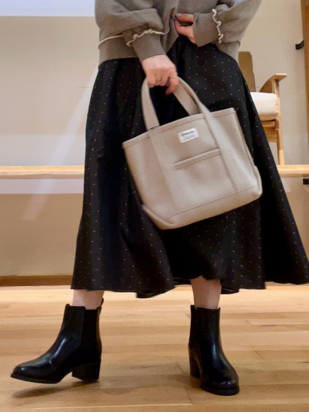 ブーツは、ややゆとりがあり履きやすくヒールが高すぎず太めでしっかりしているので歩きやすいです◉
