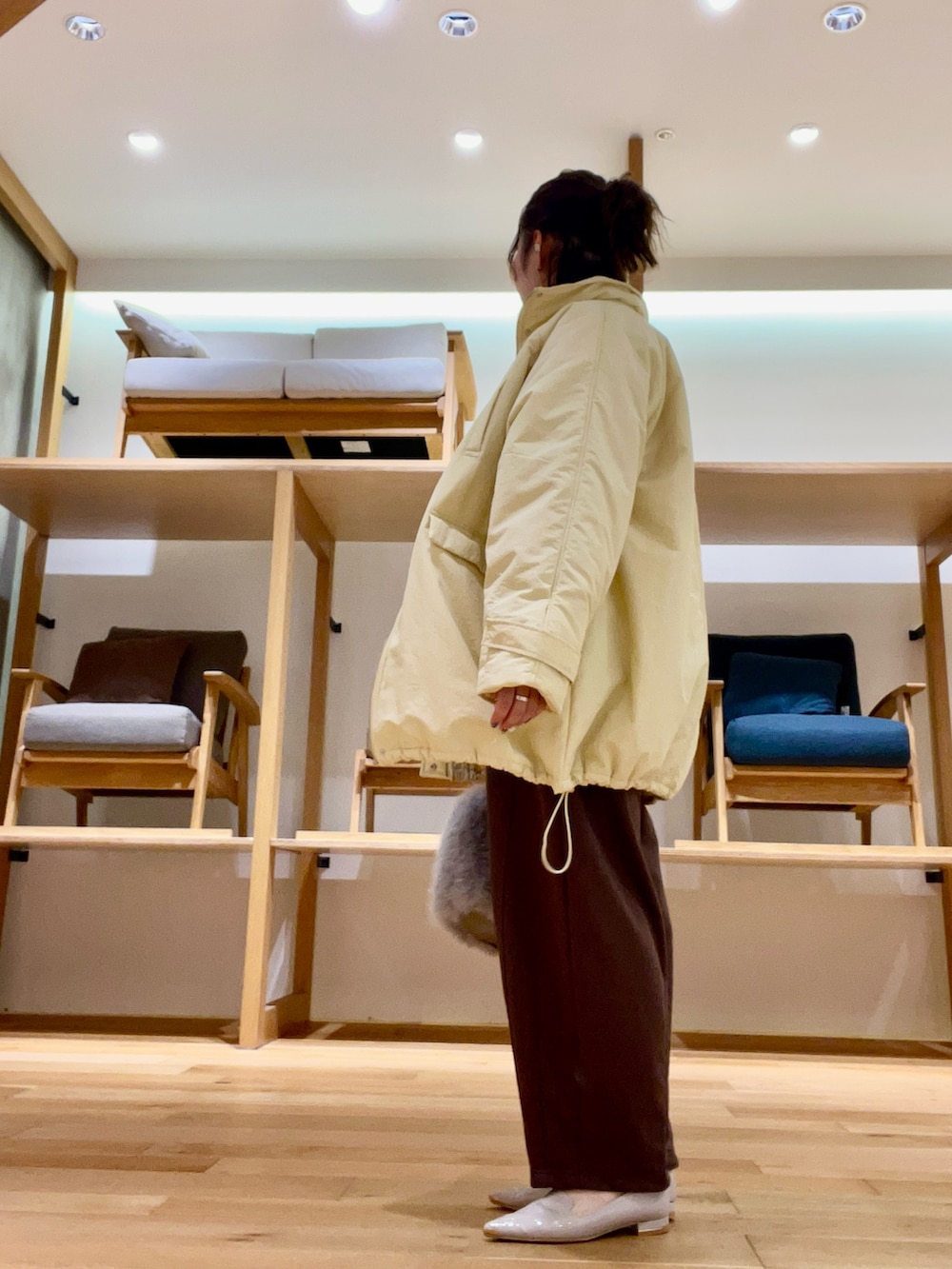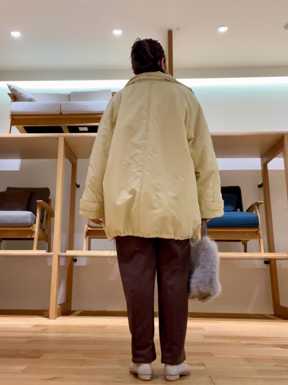 クリームカラーのモンスターコートは軽くボリュームをプラスすることができます‼︎