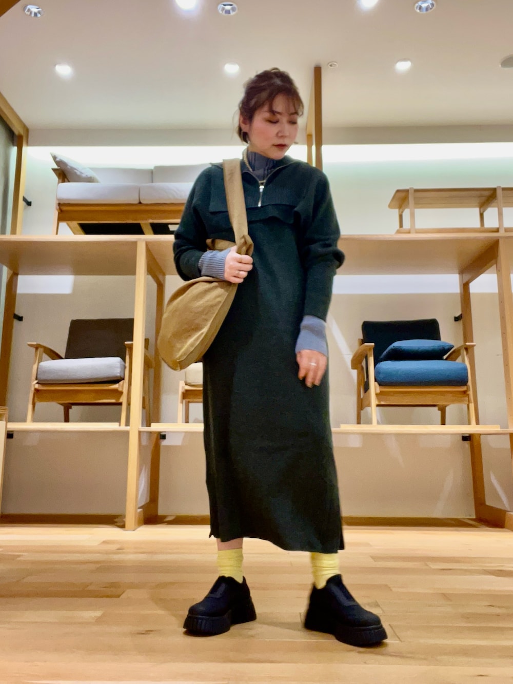 KBFハーフZIPレイヤードニットワンピース- 着用カラー: