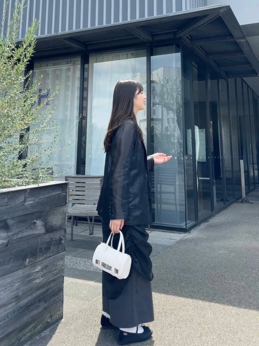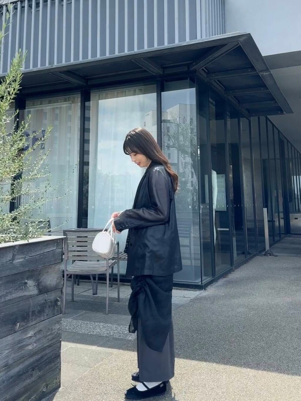 今回はアーバンリサーチのシアージャケットを着たのですが、前に着たROSSOのシアージャケットよりも少しゆとりがあり、わたし的にはこちらの方が好みでした!
