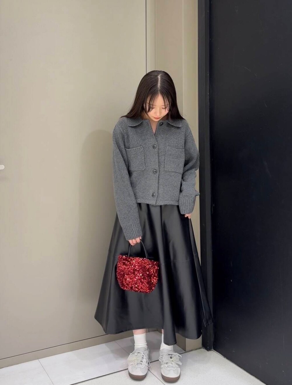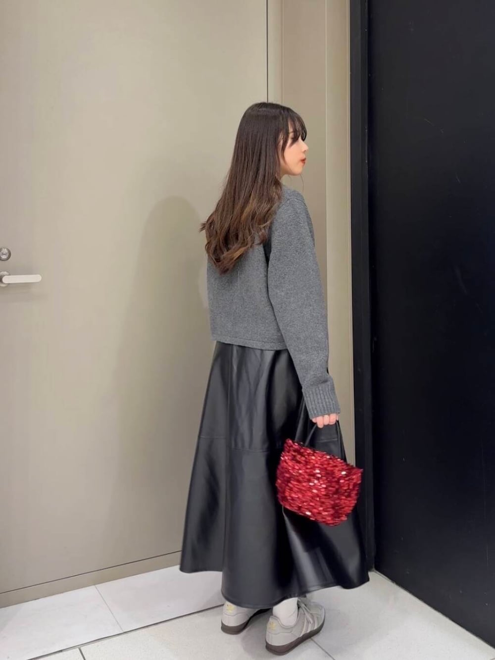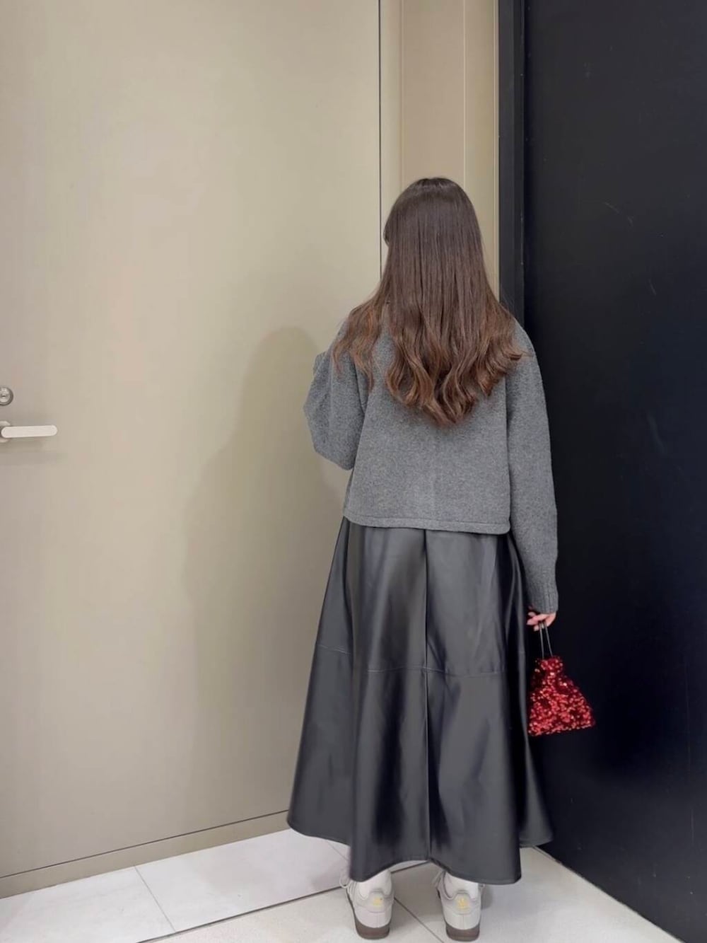 KBFのレザースカートと比べると生地に張りがあり、しっかりとAラインに広がってくれる印象でした!