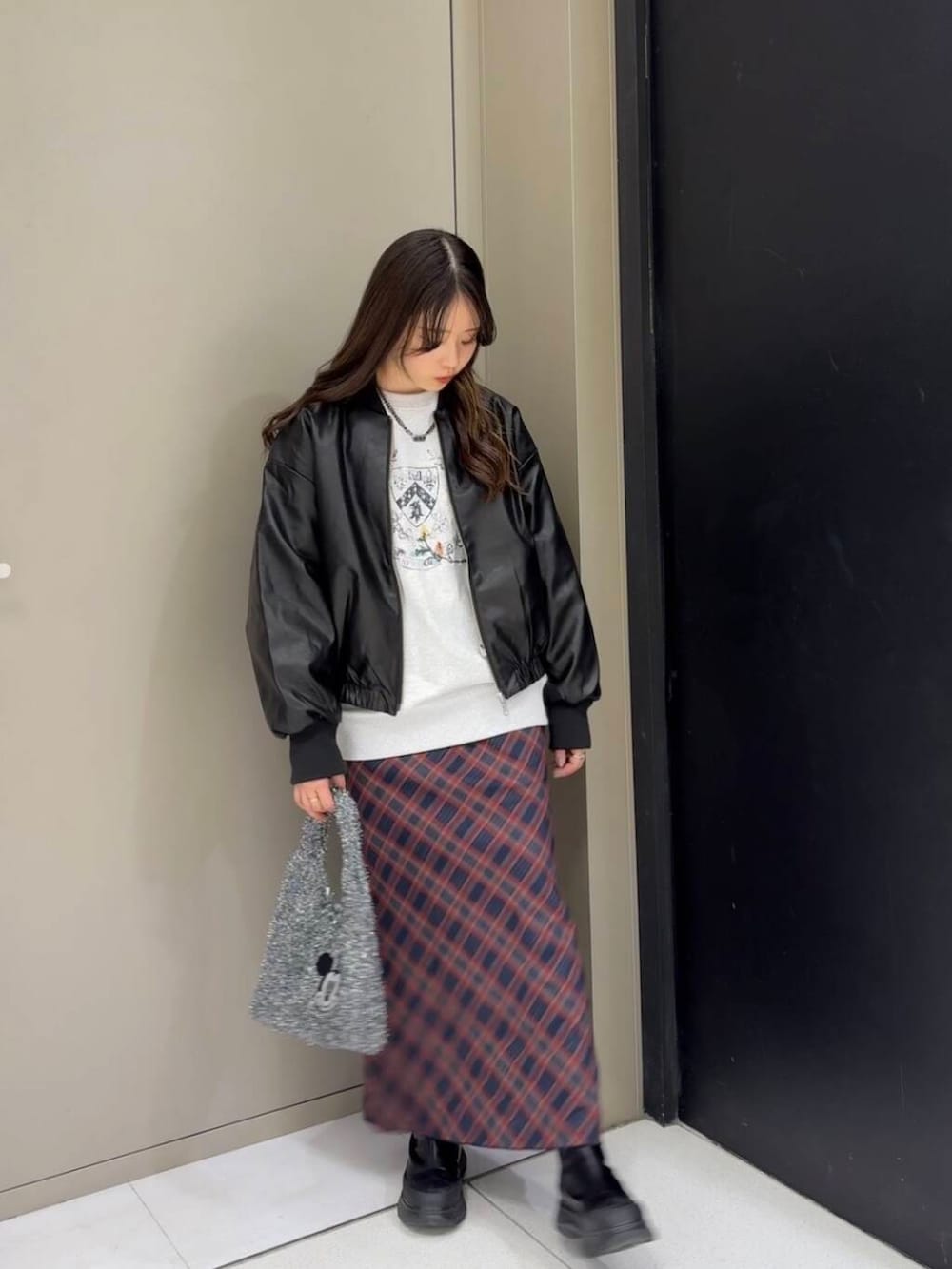 暗くなリがちなコーデにチェックアイテムなどの、ちょっとした色味を入れていくと、気分も楽しくなる気がします🫣🫧