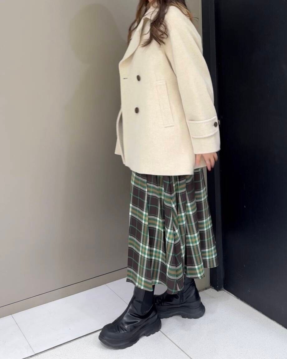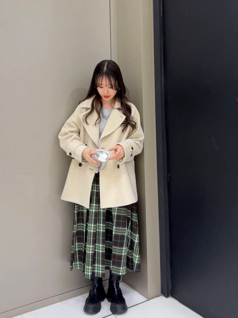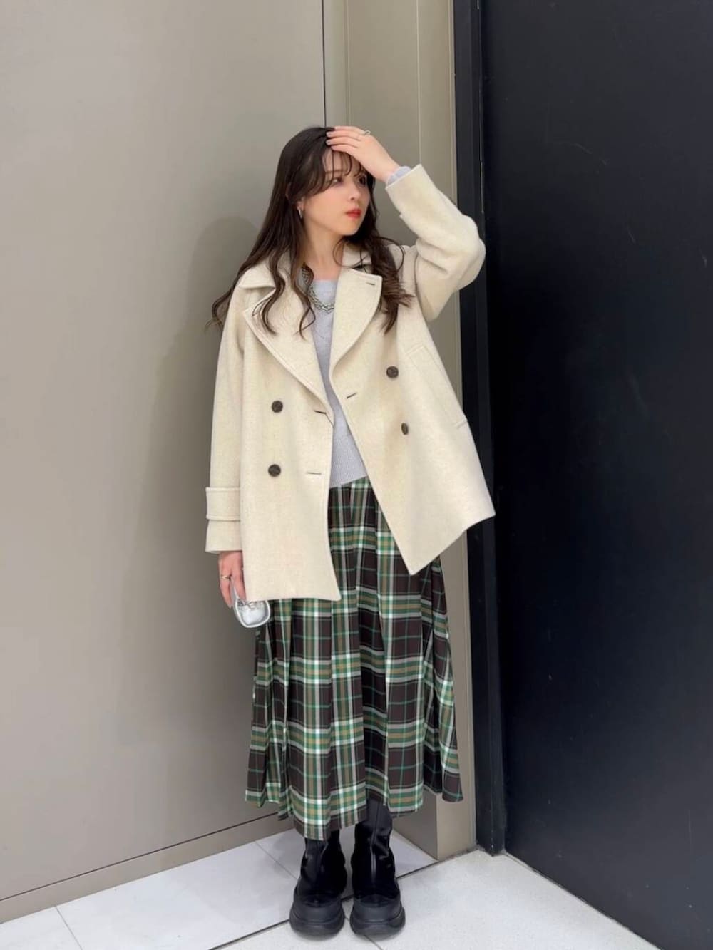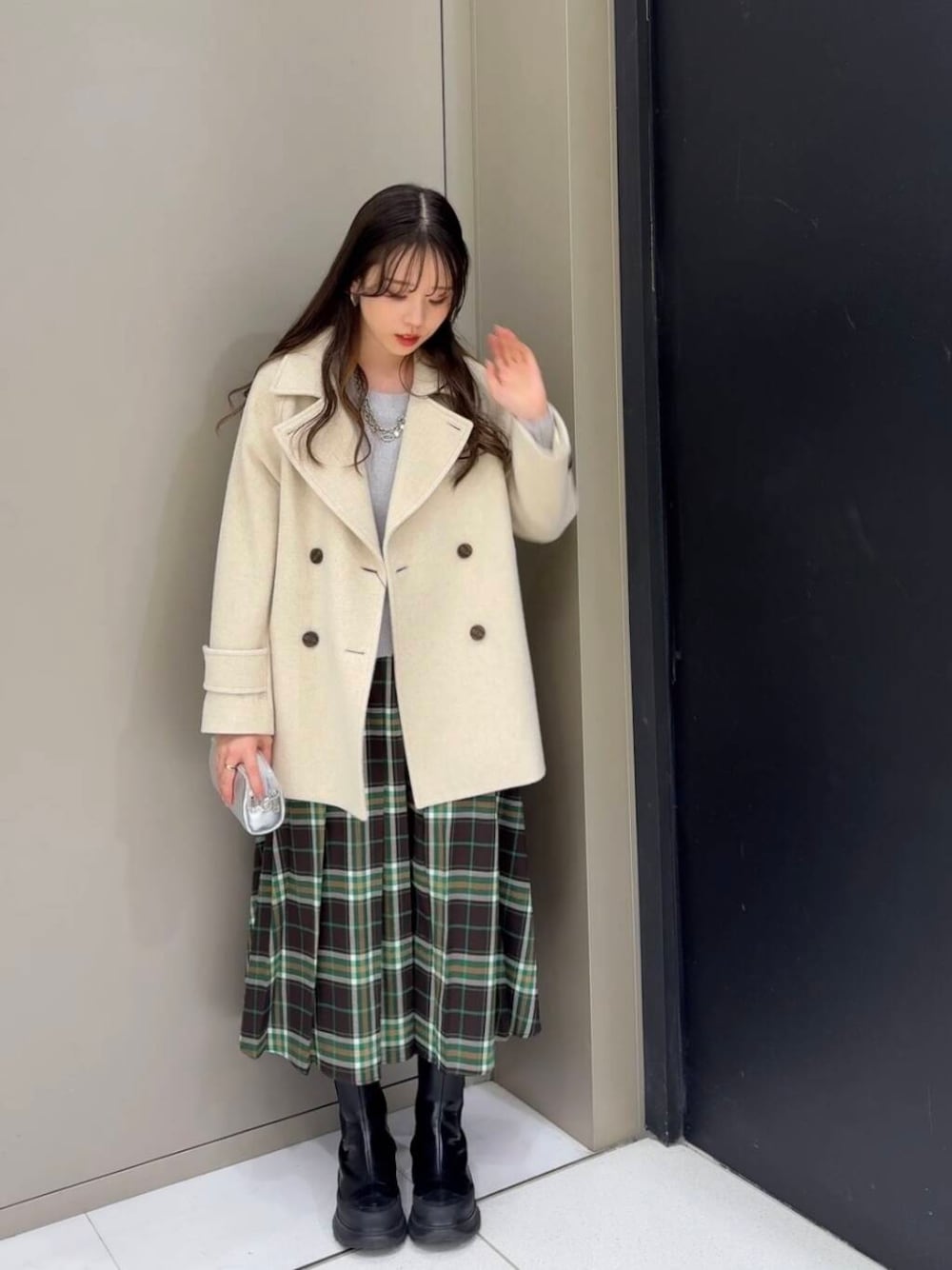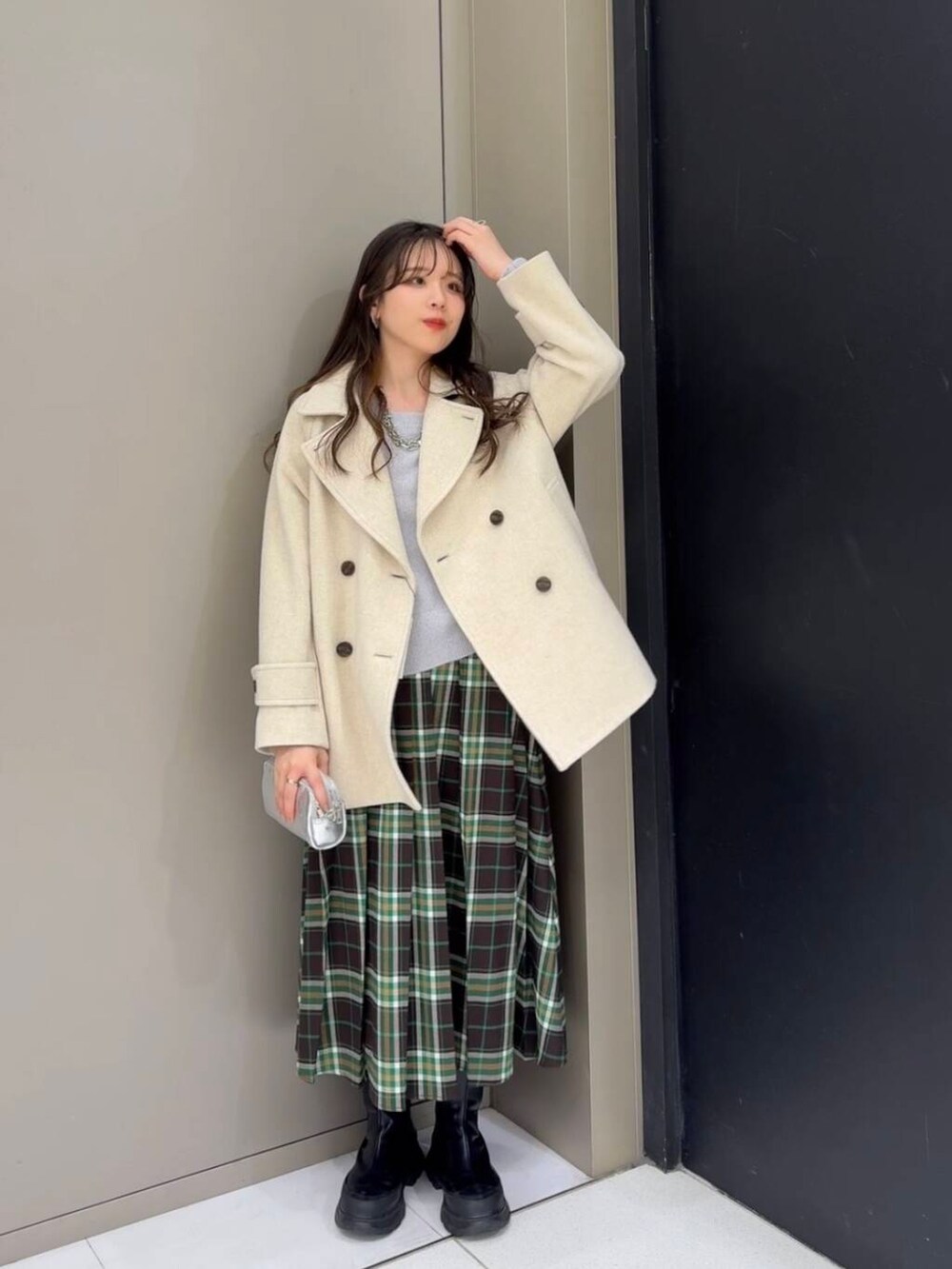 アウターに明るい色を持ってくることで顔周りも明るく見え、よりかわいく見えるんじゃないでしょうか🥰🥰