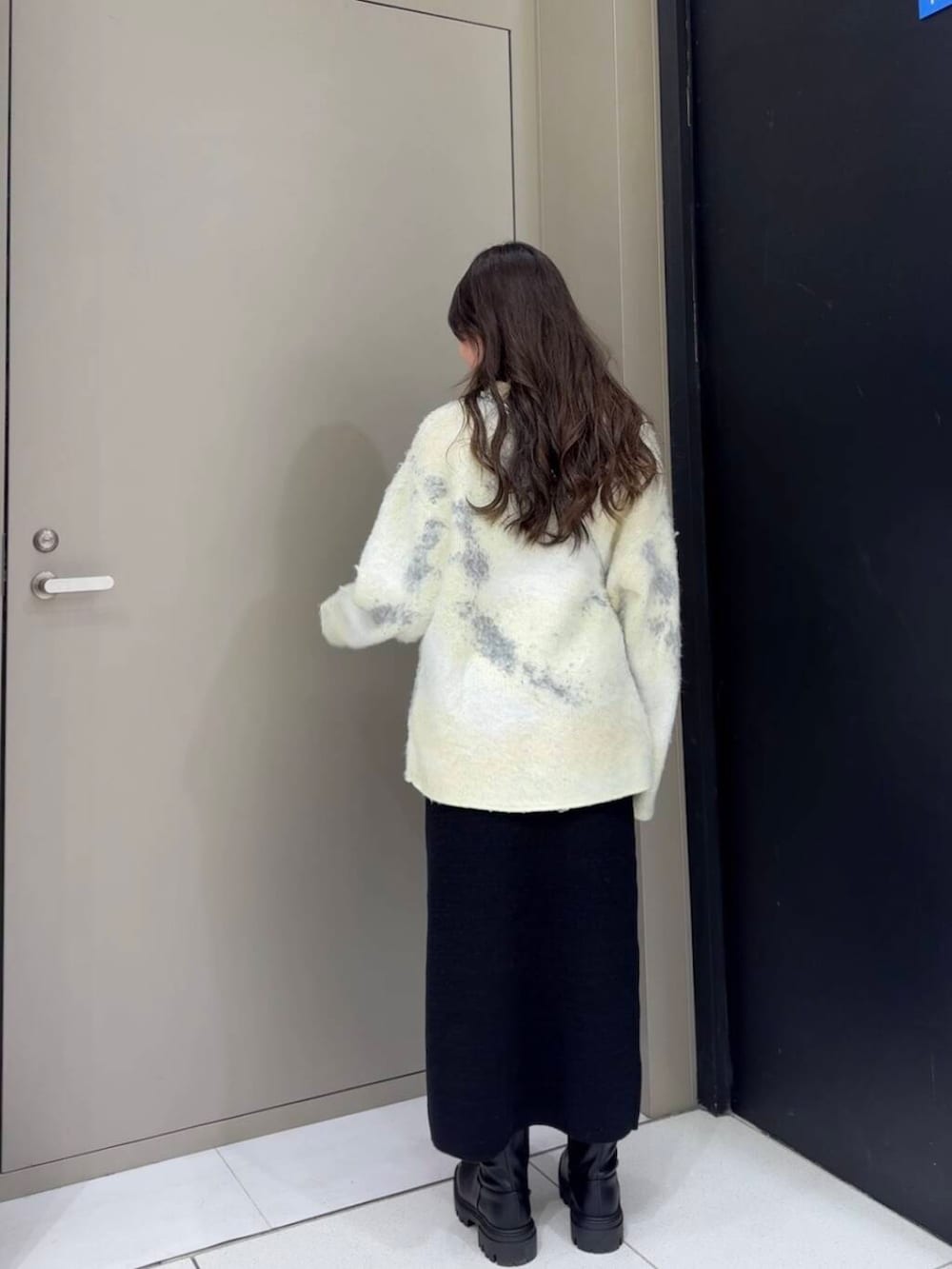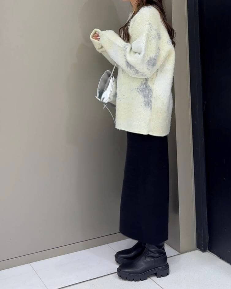 ザクッと大きめのニットなので下はあまりボリュームを出さずにすっきり着ると、大人っぽくなると思いました!!