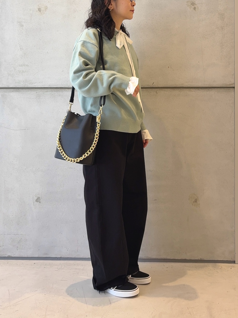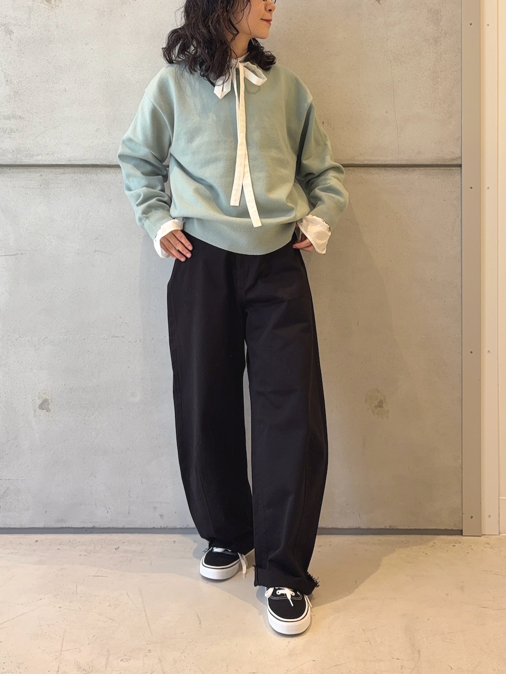 丈もやや長めですが、ゆるっと履くスタイルが