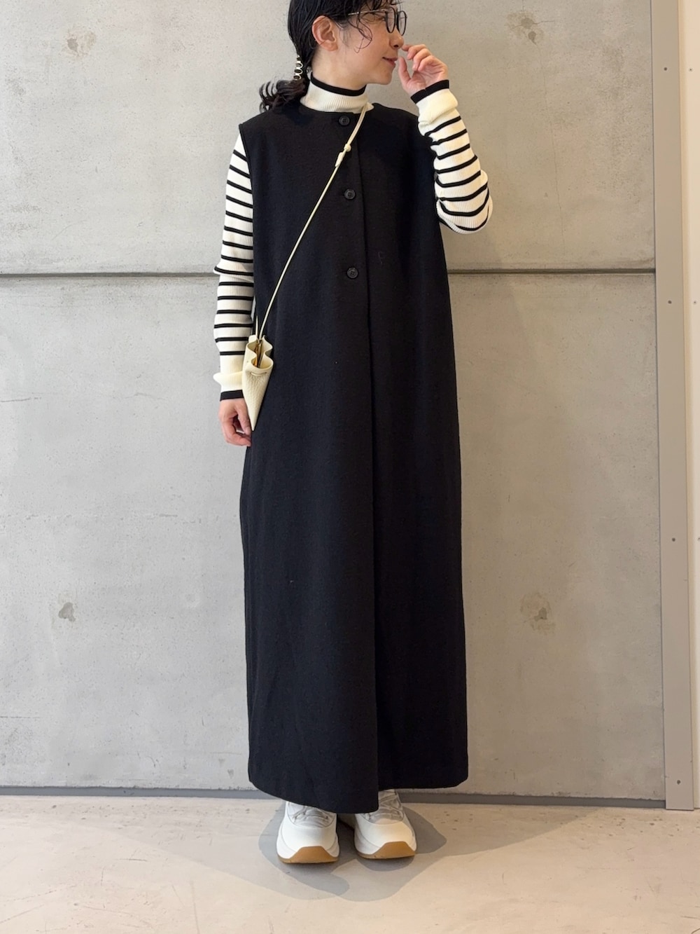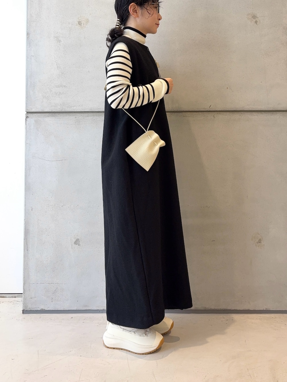 今日はインナーにリブニットを着ていますが