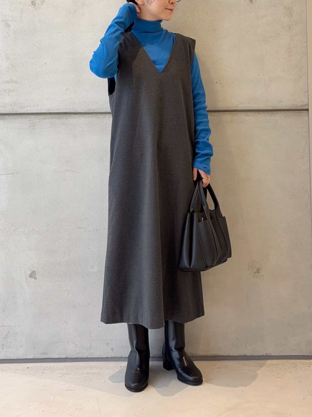 やや厚みとハリ感のある秋冬ワンピです🌚