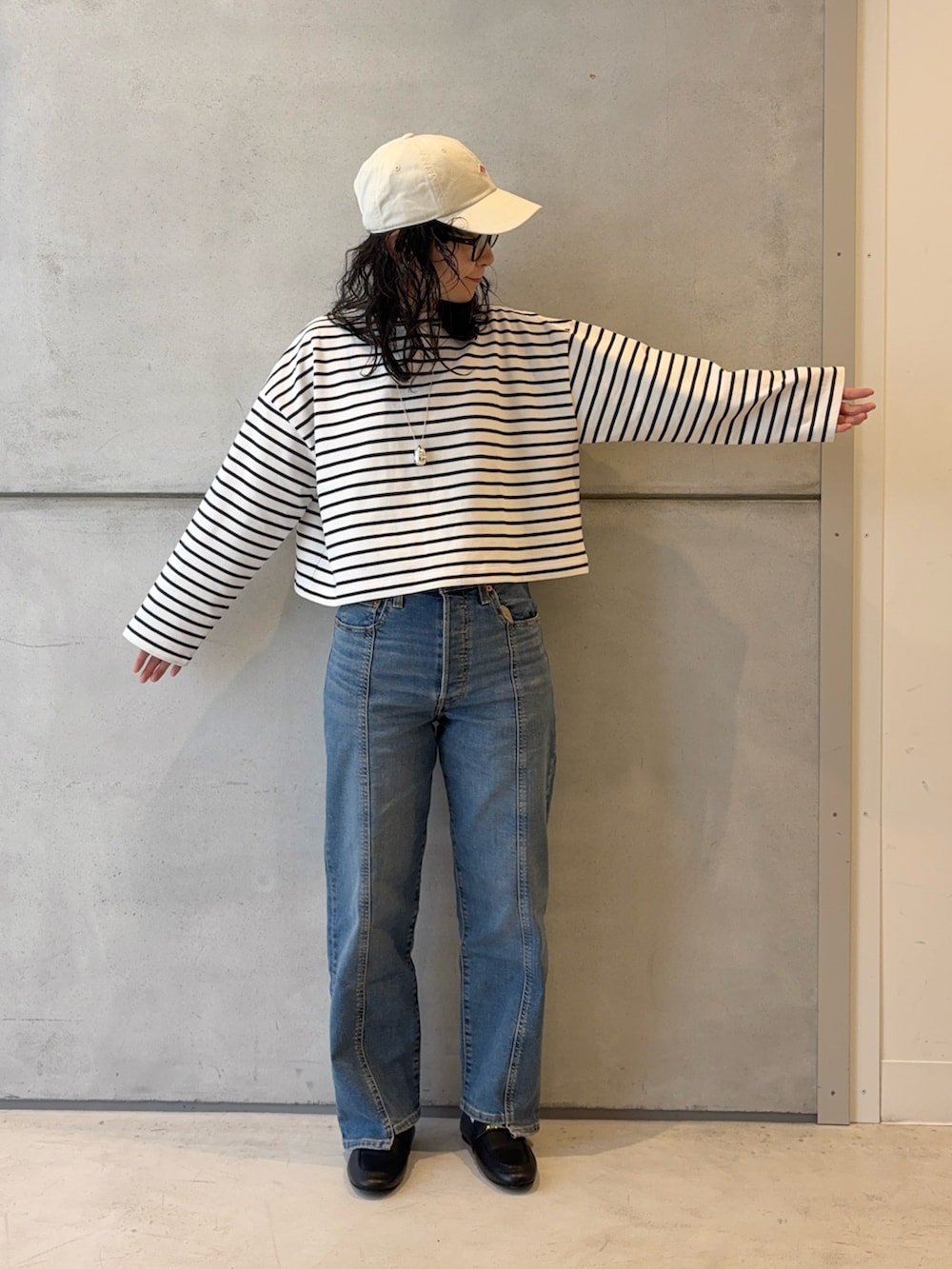 DOORSFORK&SPOON クロップドボートネックボーダー- 着用カラー: