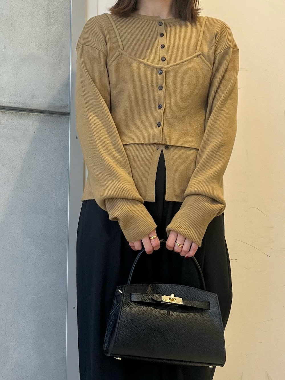 合わせて着るだけで様になりますが、ビスチェを他のアイテムと合わせたり、カーディガンだけで着たり、、着回しがたくさんできるアイテムなので、オススメのニットです!
