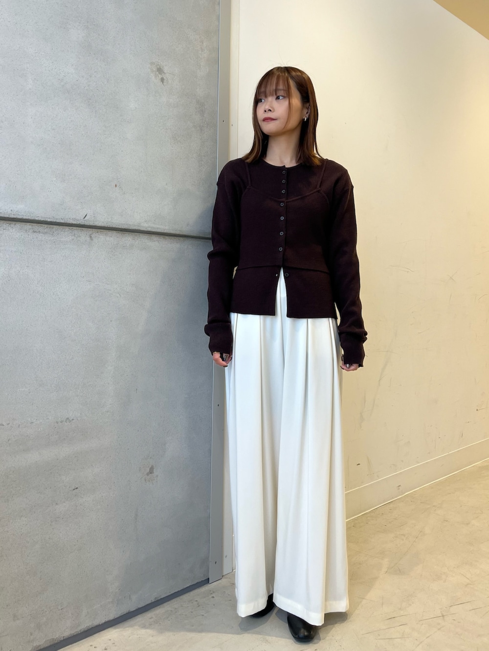 中に着てるレイヤードニットは着回し力が抜群のアイテム。ニット、ビスチェをそれぞれ他のアイテムと合わせるのも◎