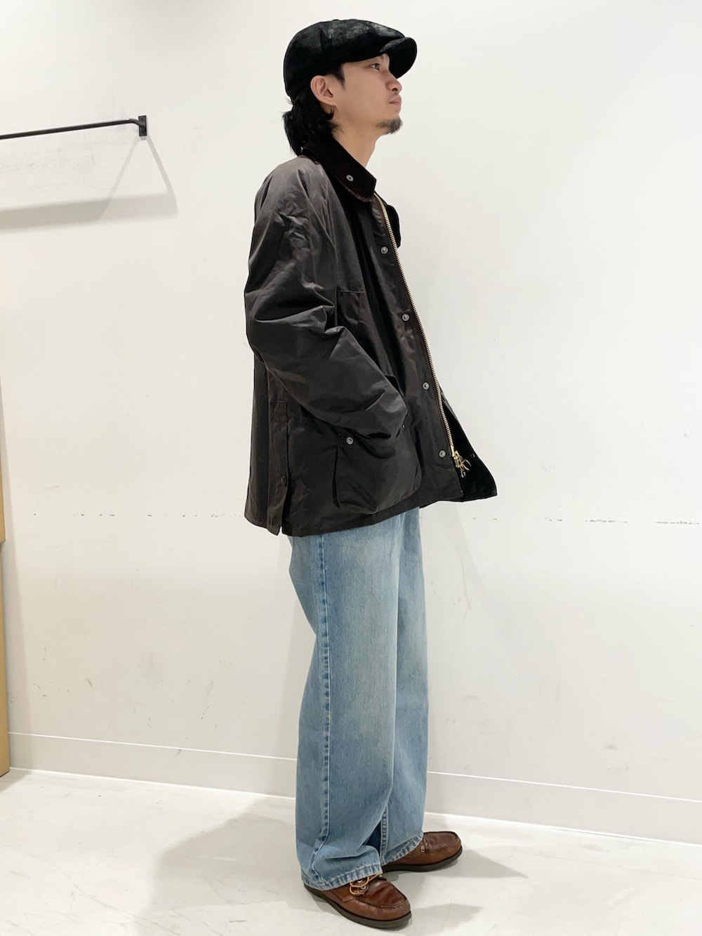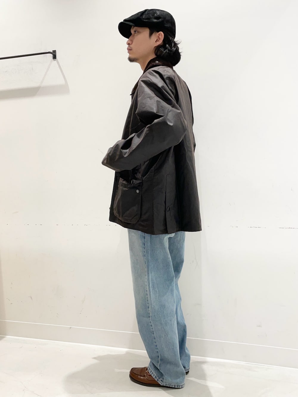 色味の良いBarbour。どうしても白シャツにデニムで羽織りたかったんです。