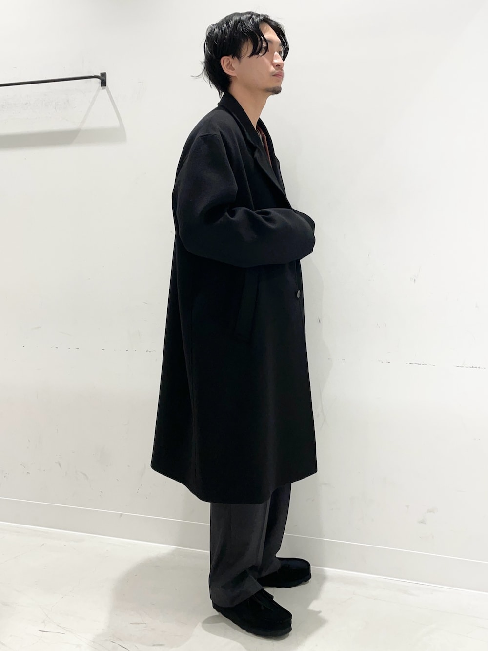 このウールコートは身幅に余裕があり、ニットやスウェット、インナーダウン等着こむことができます。