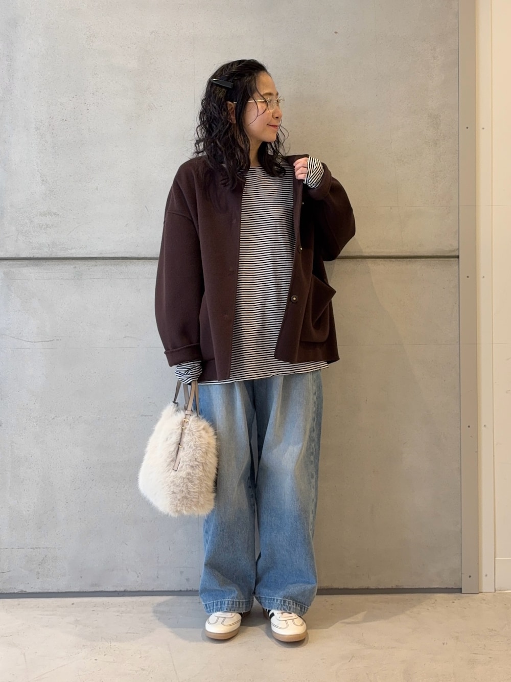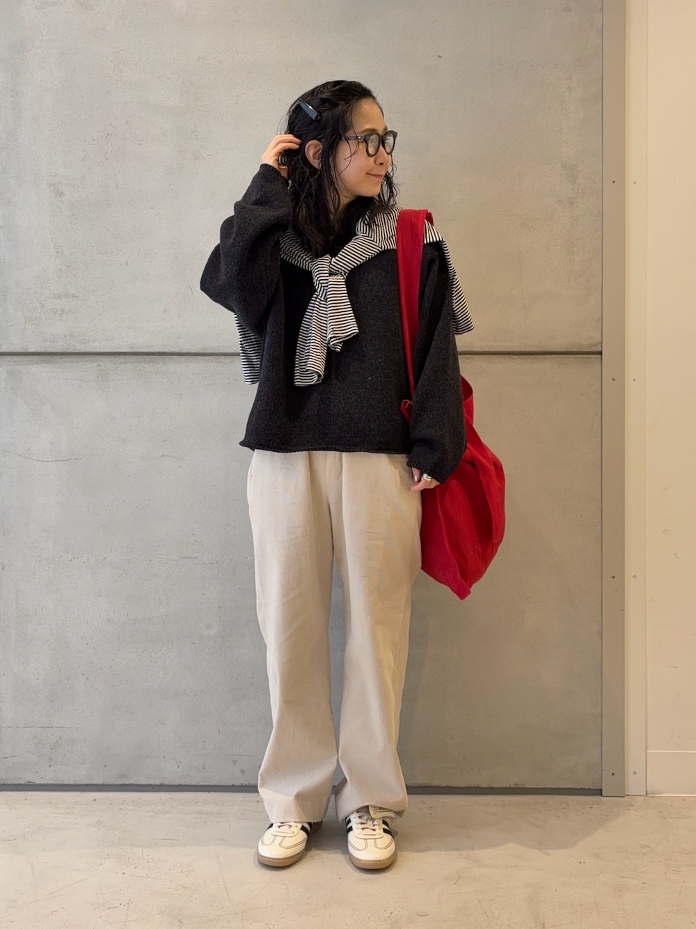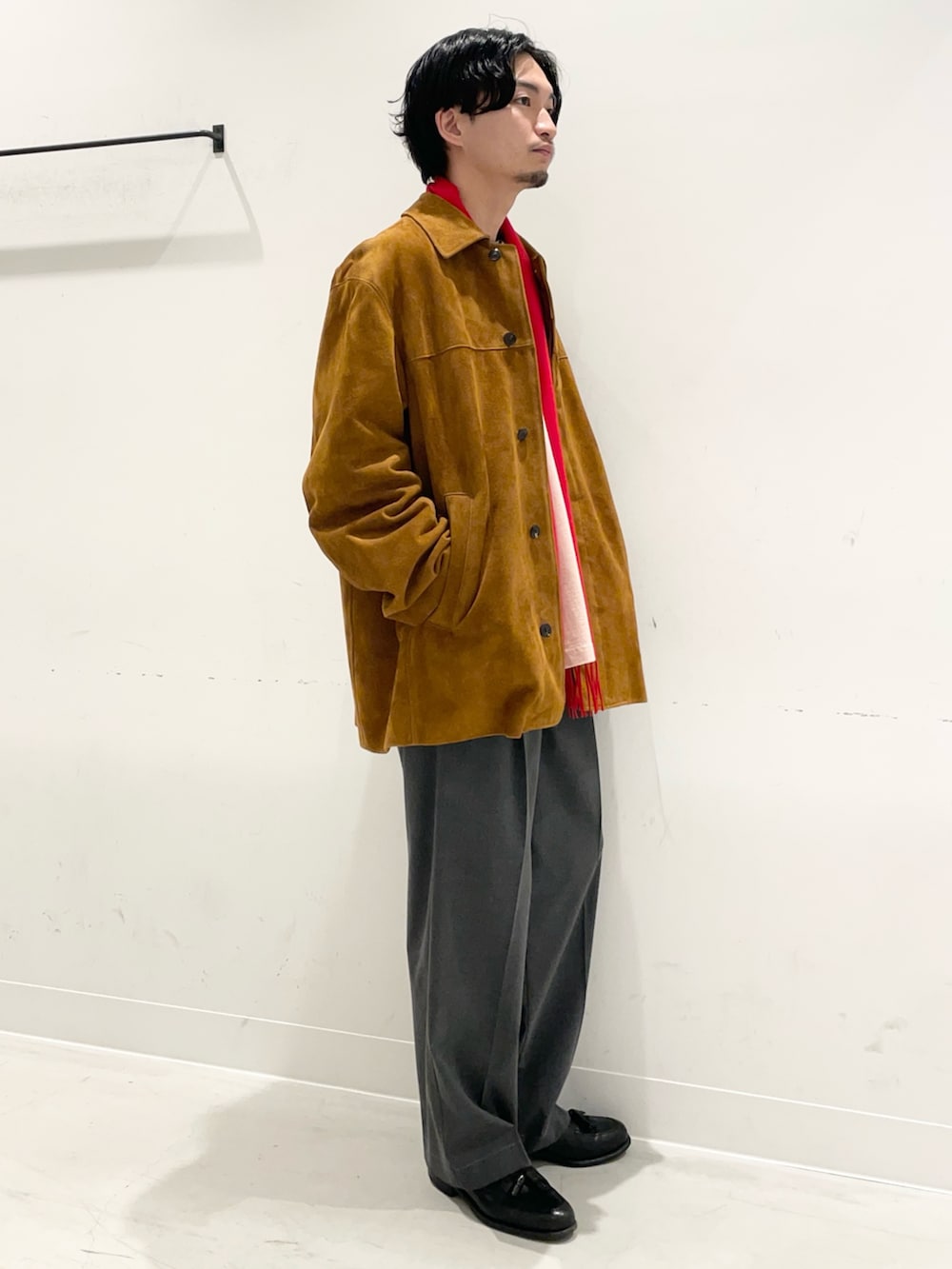 春の雰囲気ムンムンなんですが、まだまだ冷え込むのでカシミヤマフラーで冬夏端境期コーデをしてみました!
