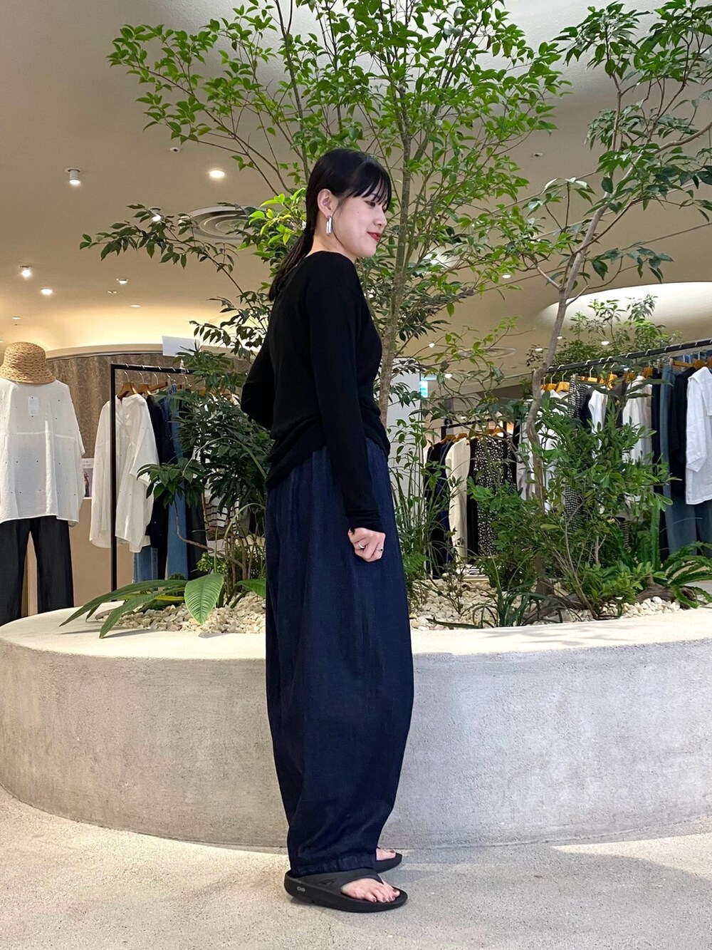 トップスは首回りのあき加減が女性らしく、1枚で着てもかわいいですし、