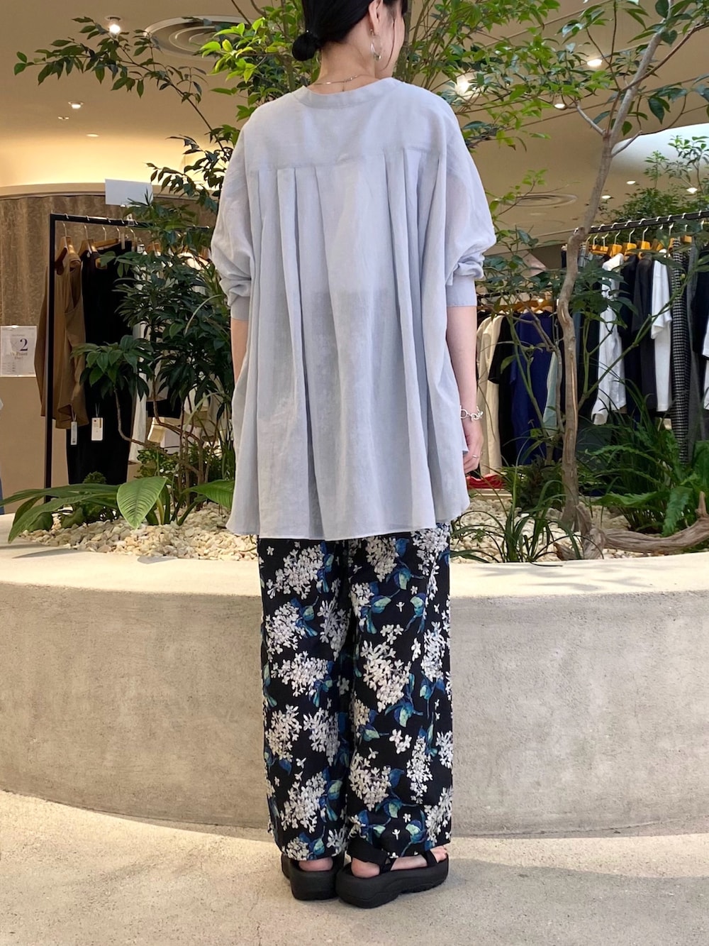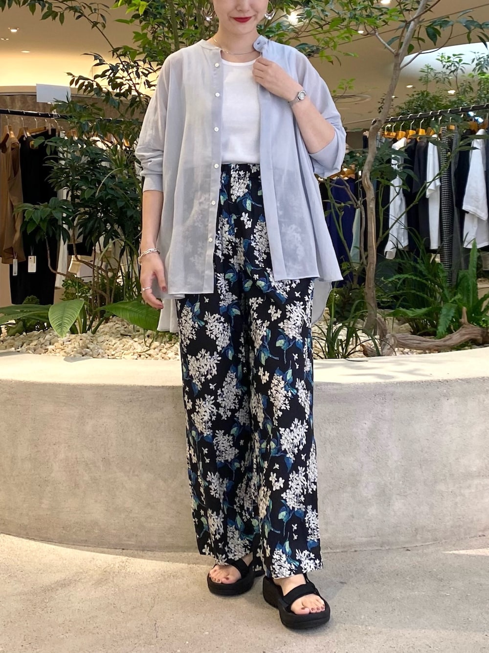 今回はリバティの柄パンツと合わせてきれいめカジュアルに。