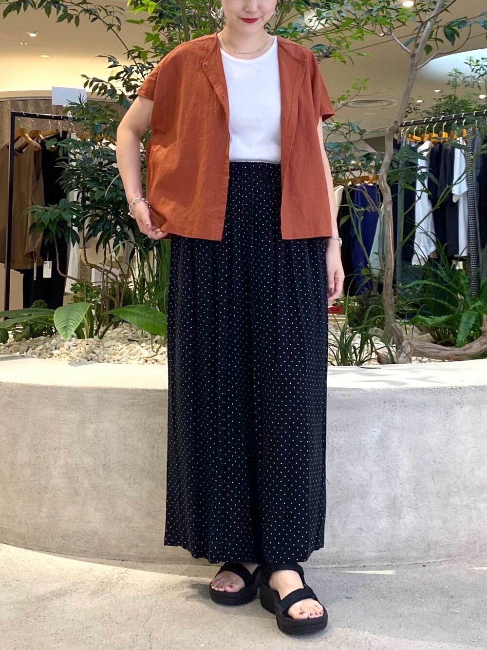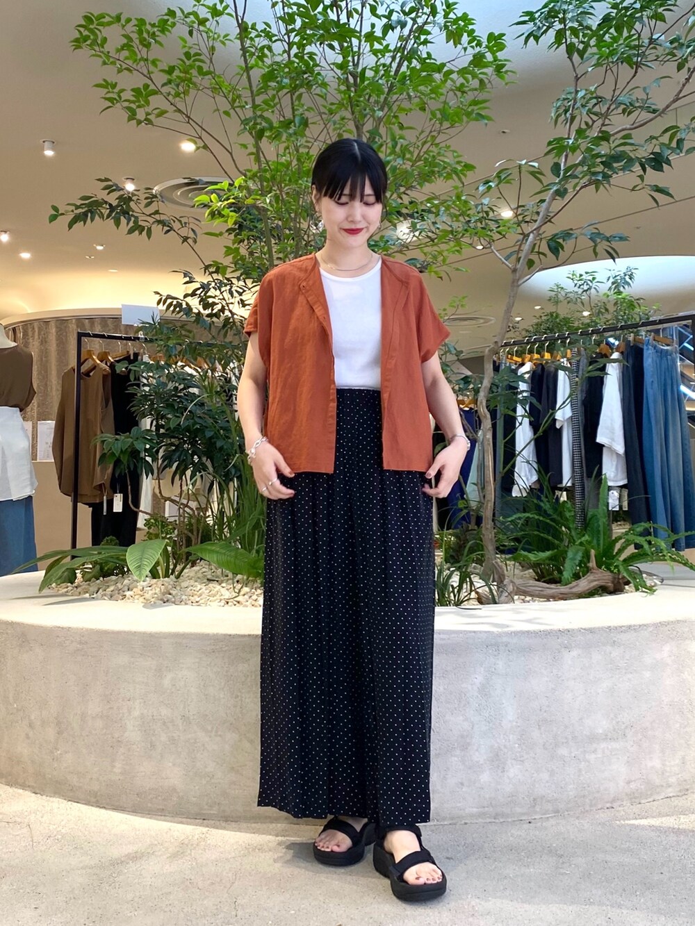 こちらのカラーはブルベの方は少しくすみがちなお色かなと思いますが、そういう場合は白のインナーを合わせることでお顔うつりが良くなり着やすくなります♩