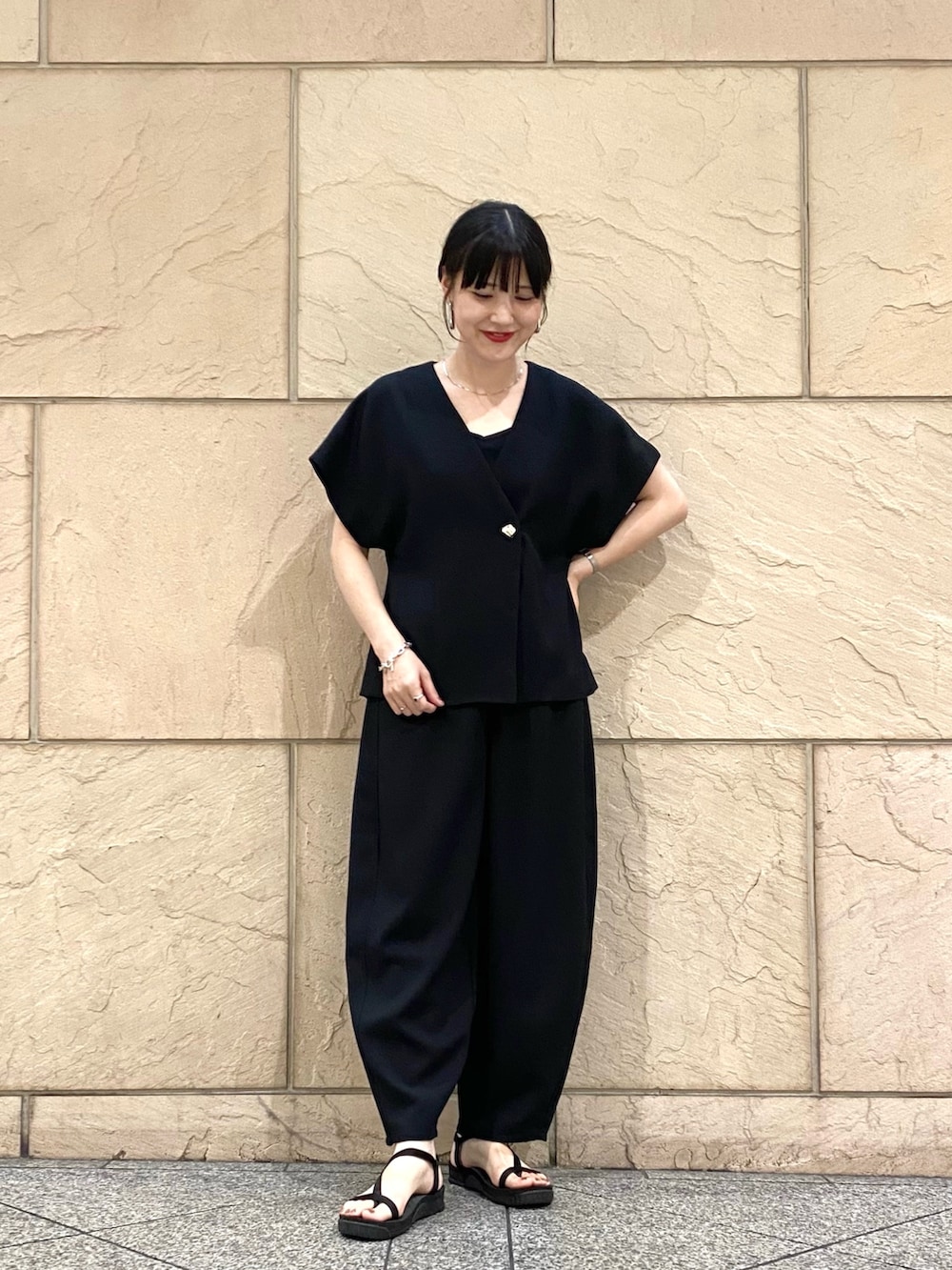 私はサンダルでラフに合わせましたが、ヒールを合わせるときれいめなシーンにも◎