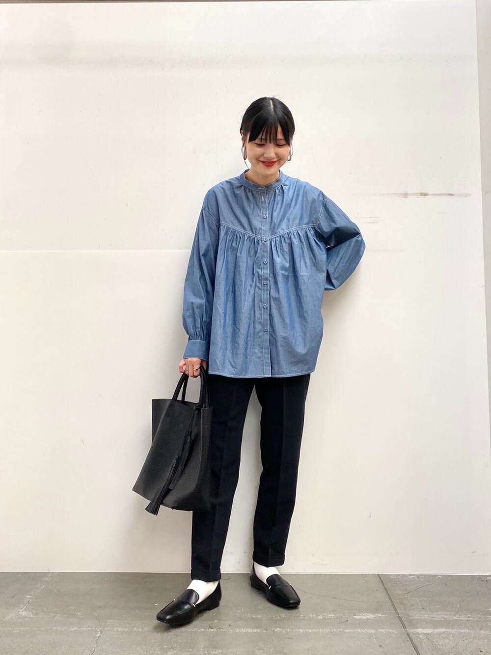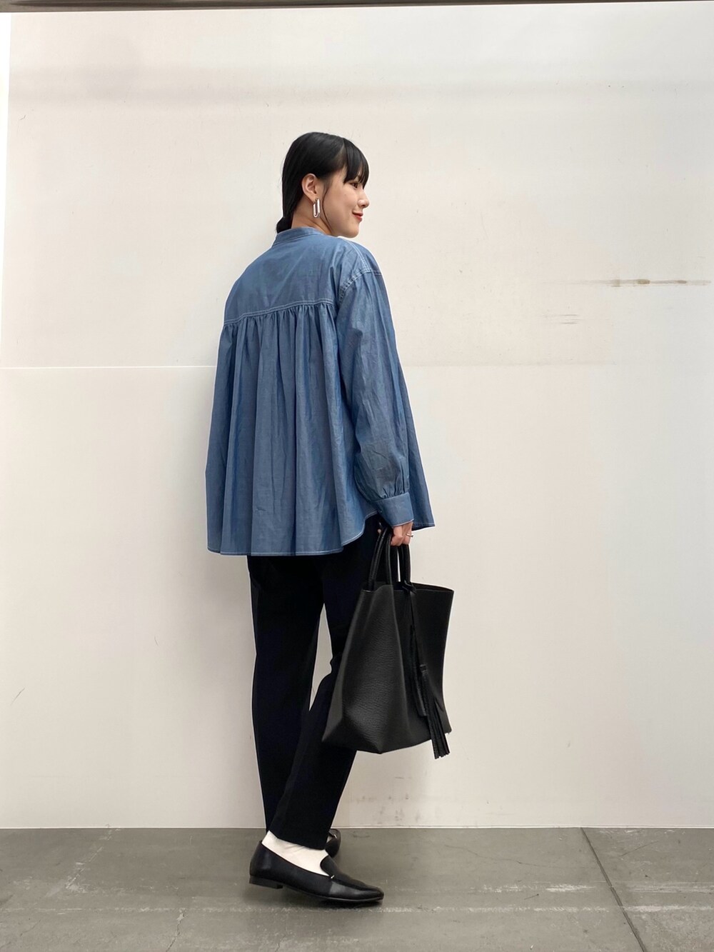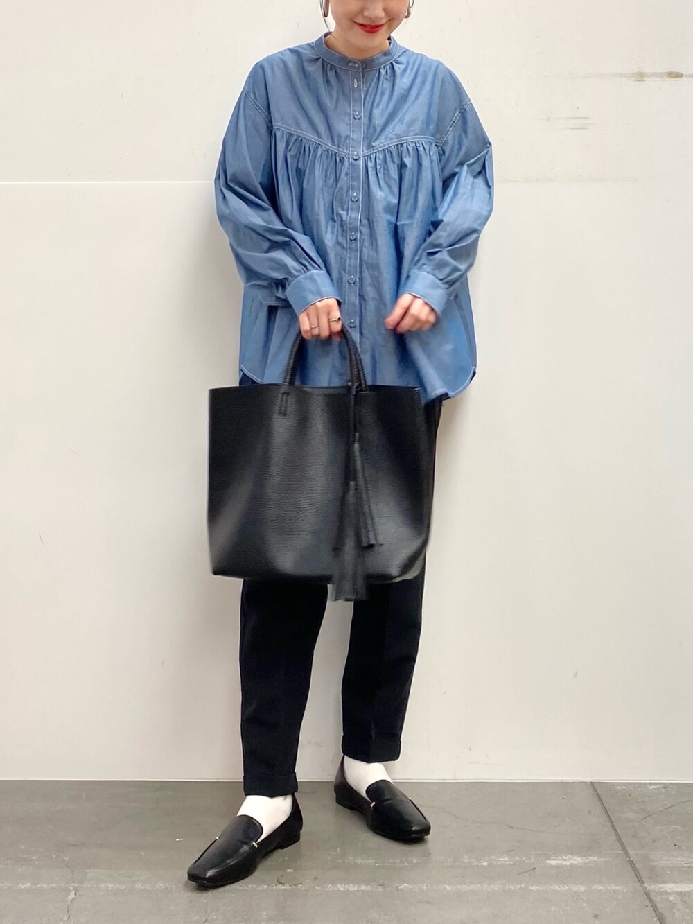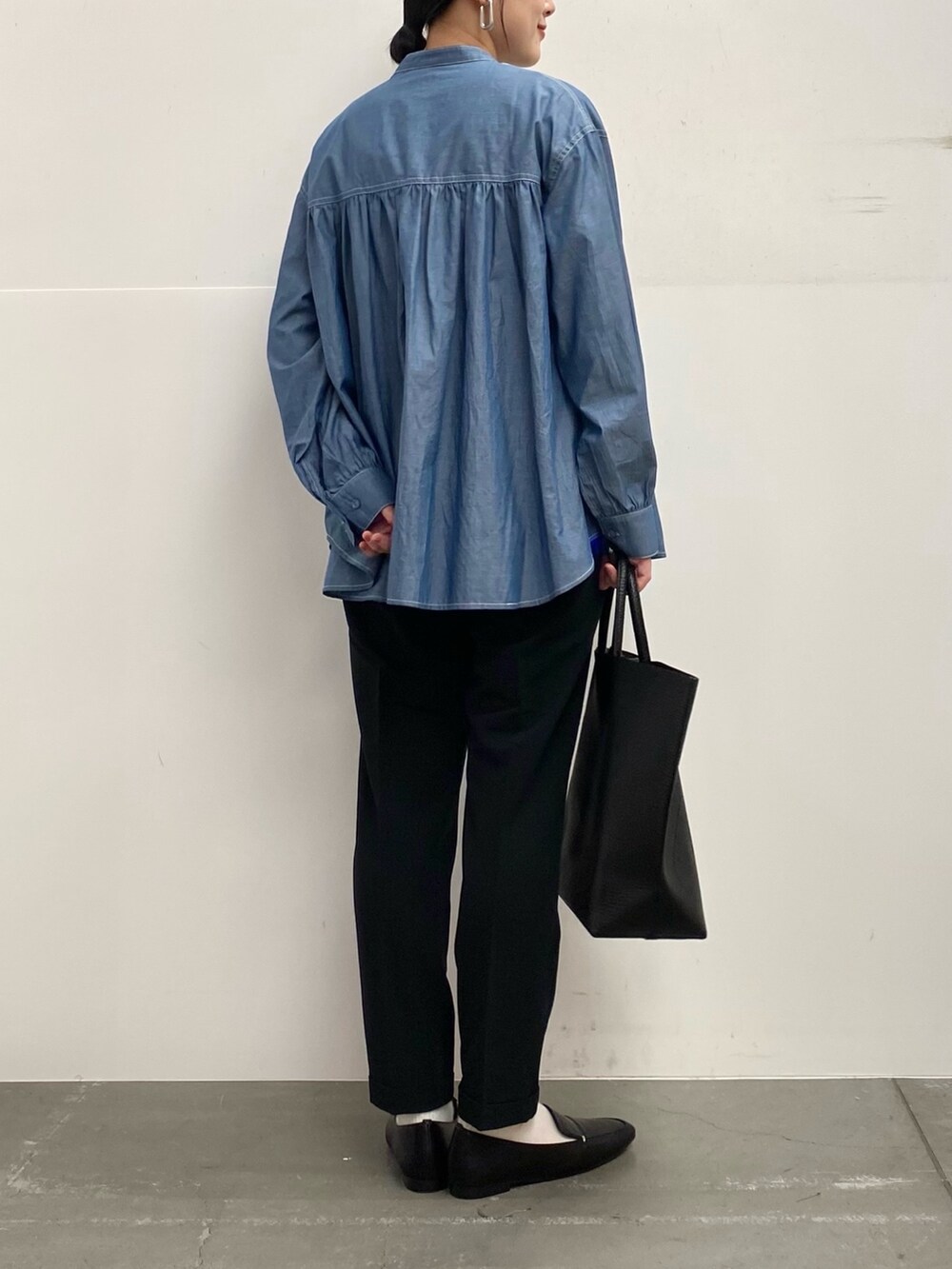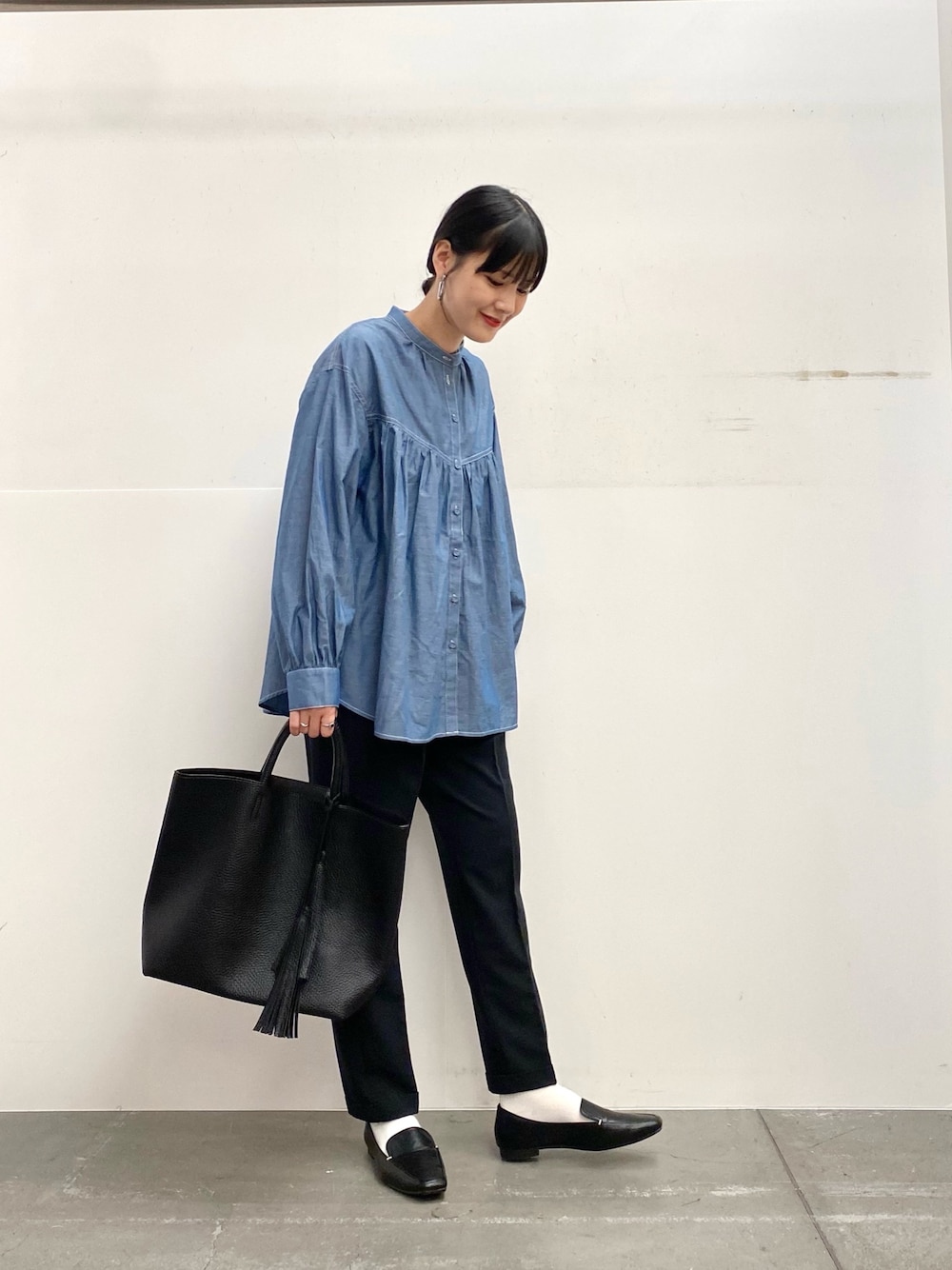 テーパードパンツと合わせてすっきりきれいに見えるようにバランスをとりました♩