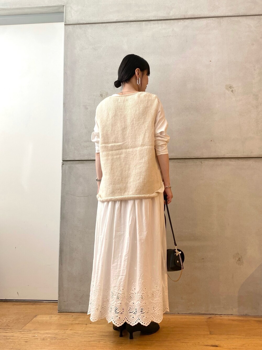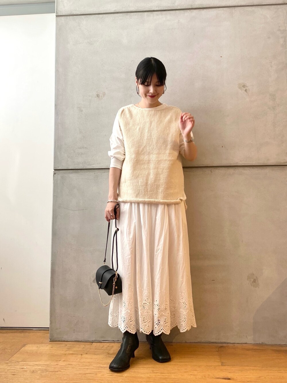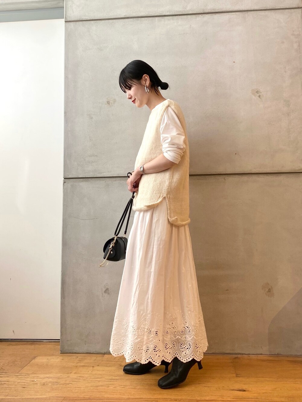 大人気のニットベストと刺繍のスカートでほっこりカジュアルなスタイリングです!