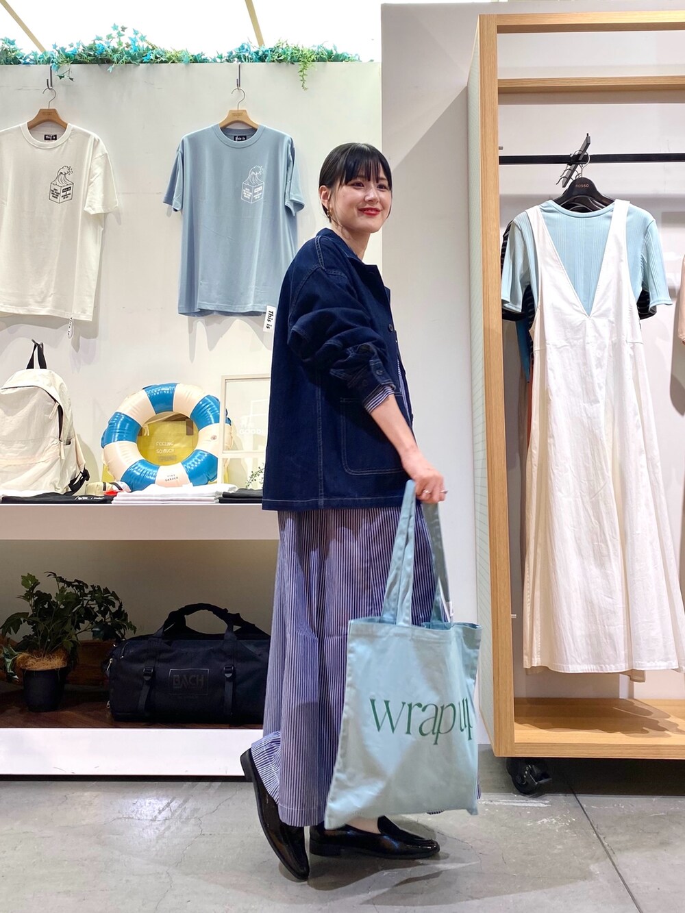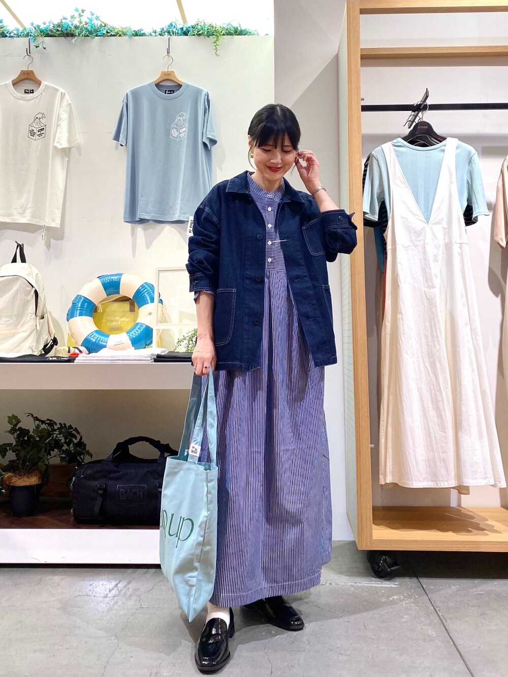 デニムのカバーオールは気温が下がったらすぐ羽織れます♩