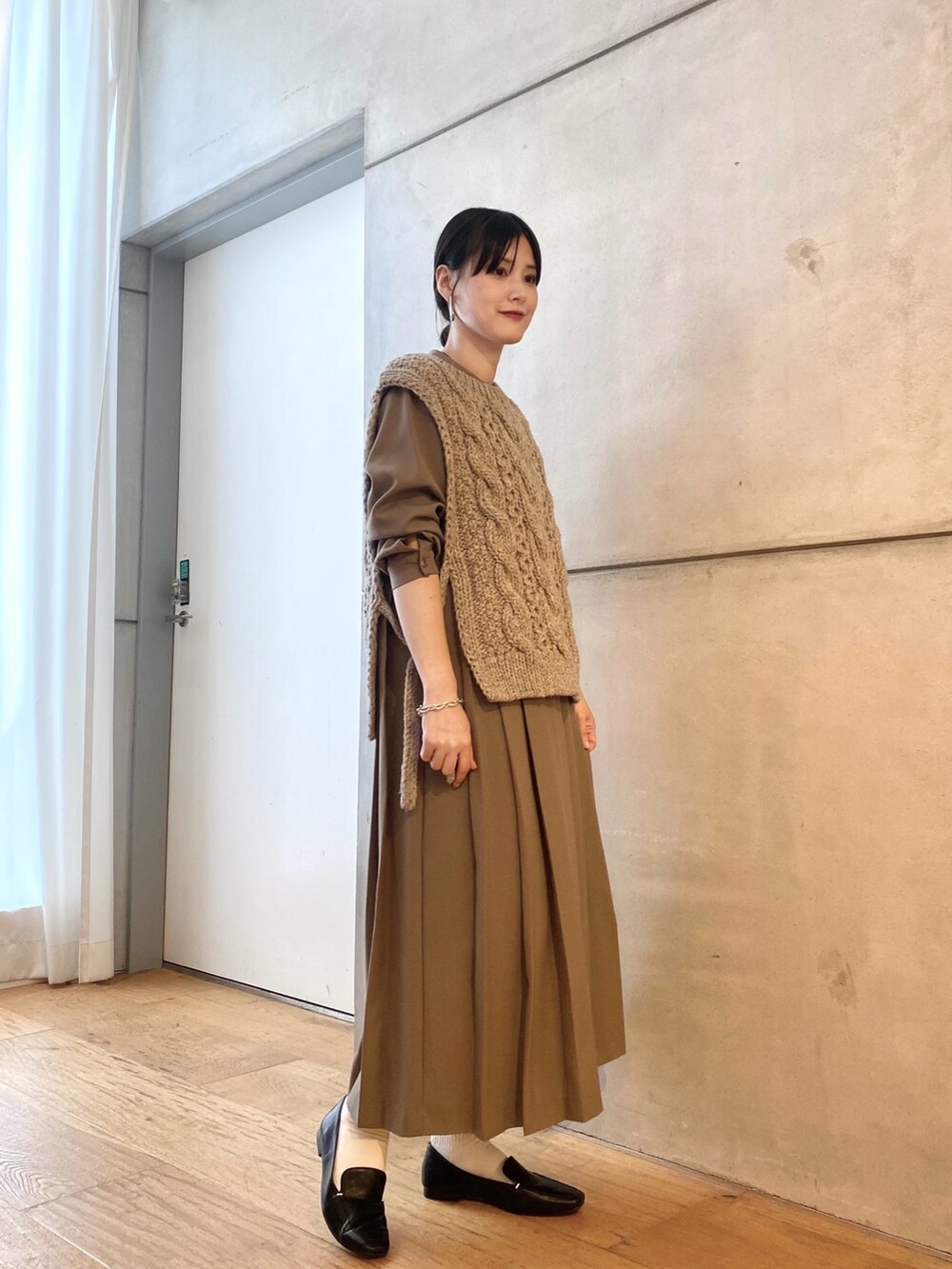 ワンピースは身長158㎝でMサイズですと足首より少し上くらいの丈感です◎
