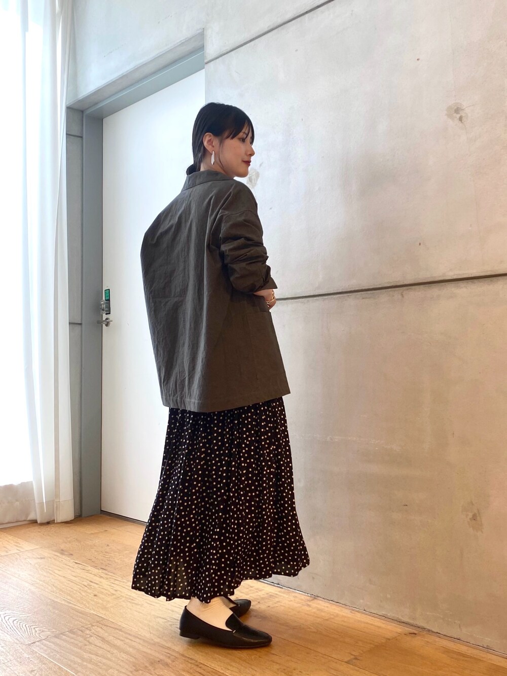 ドットのスカートを合わせてカッチリしすぎないようにバランスをとりました♩