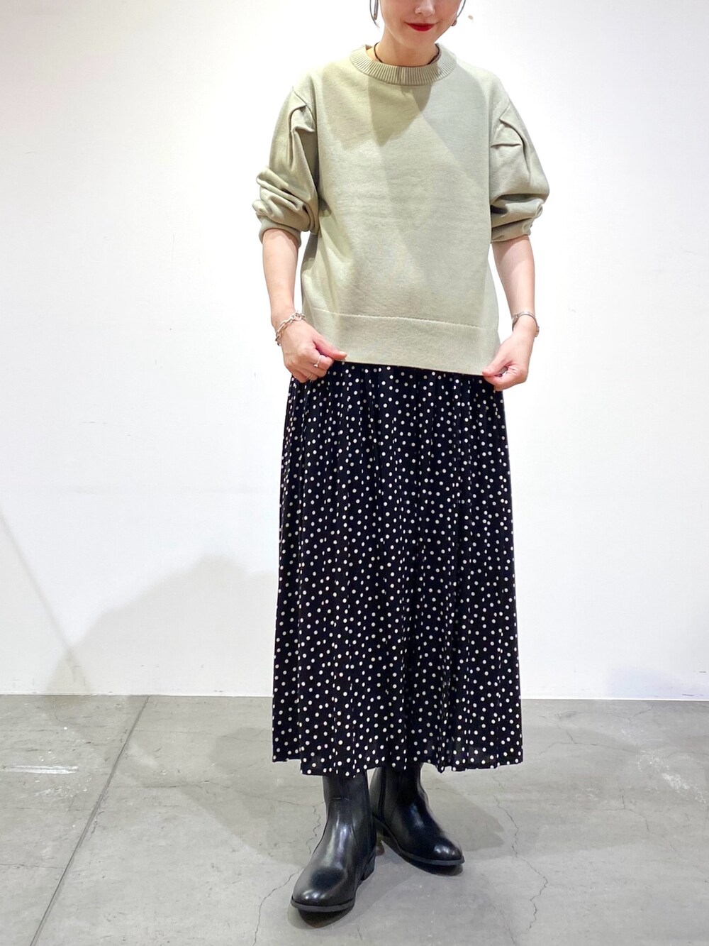 ドットのスカートは落ち感があり広がりすぎずシルエットがとてもきれいです!