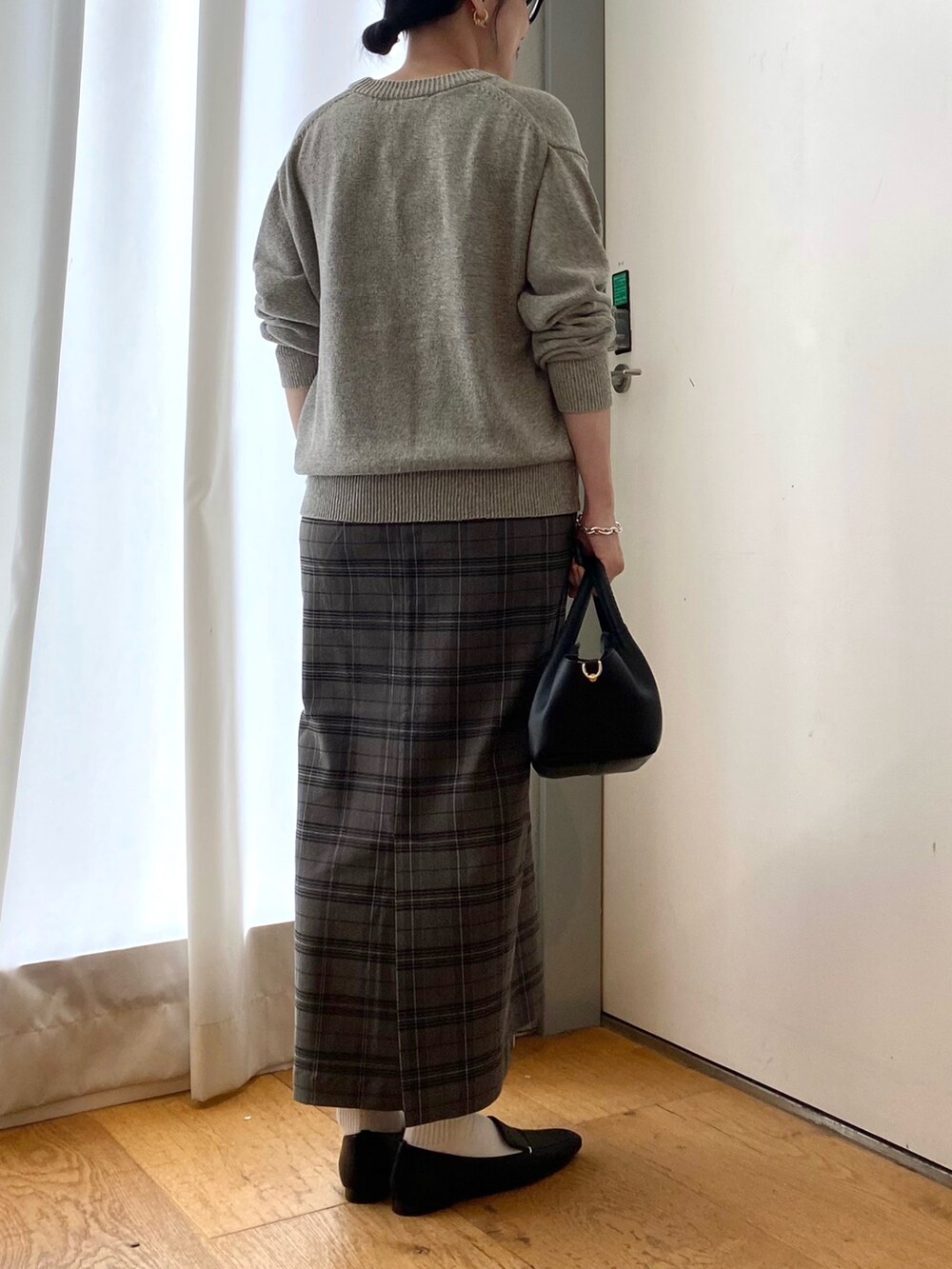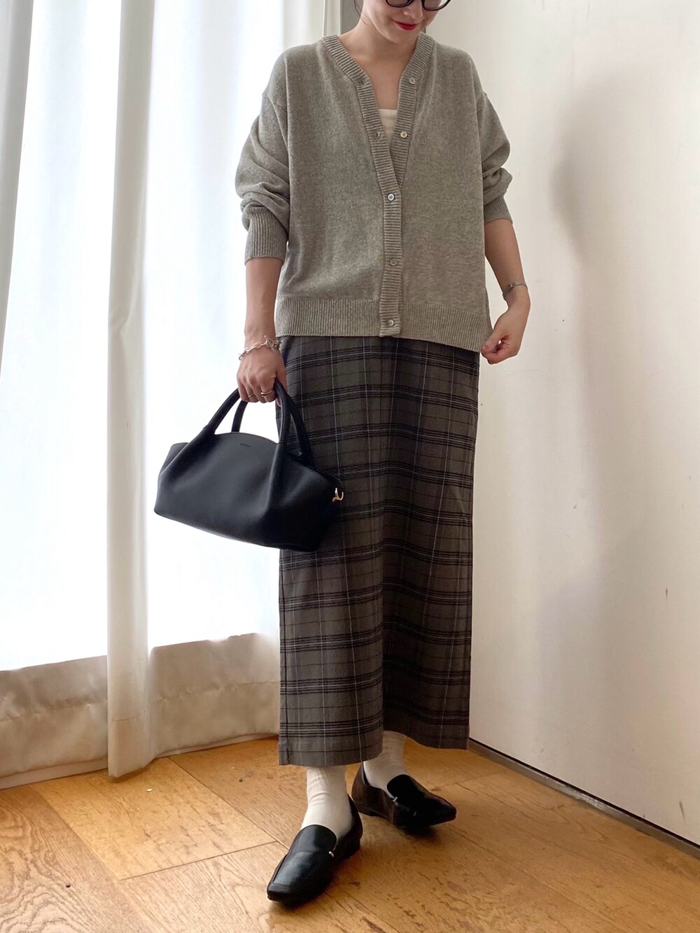 チェックのスカートと合わせて秋冬らしくスタイリングしました◎