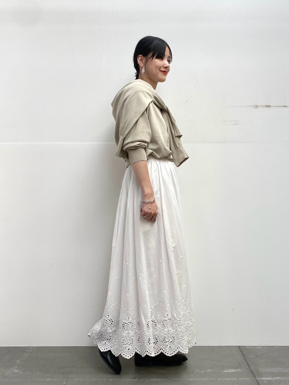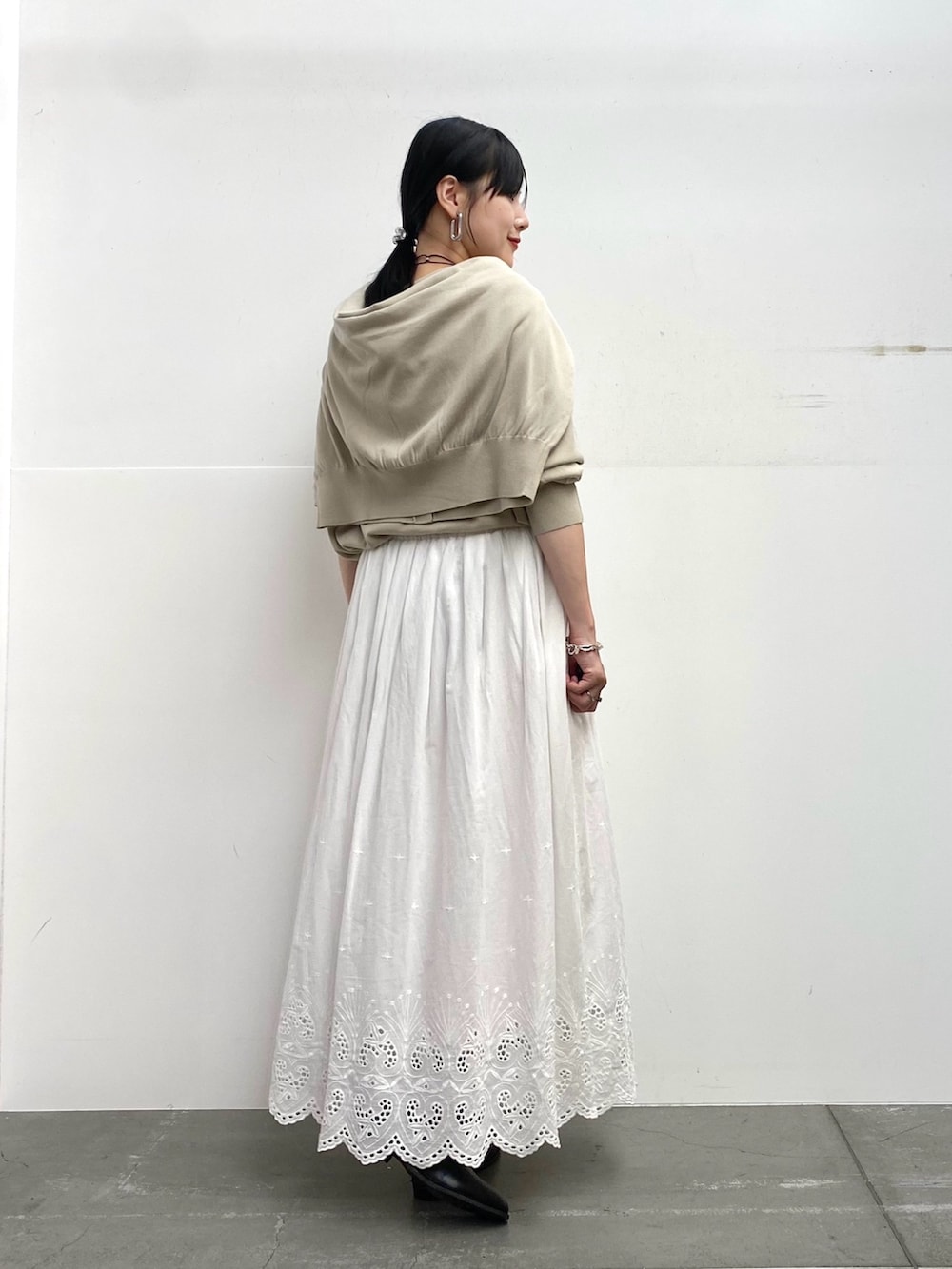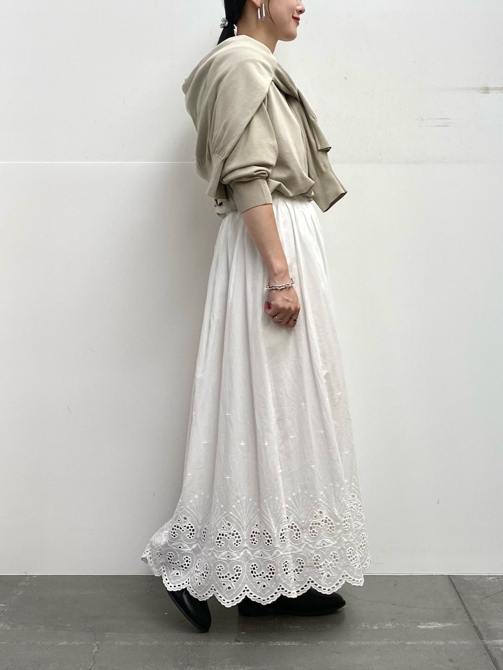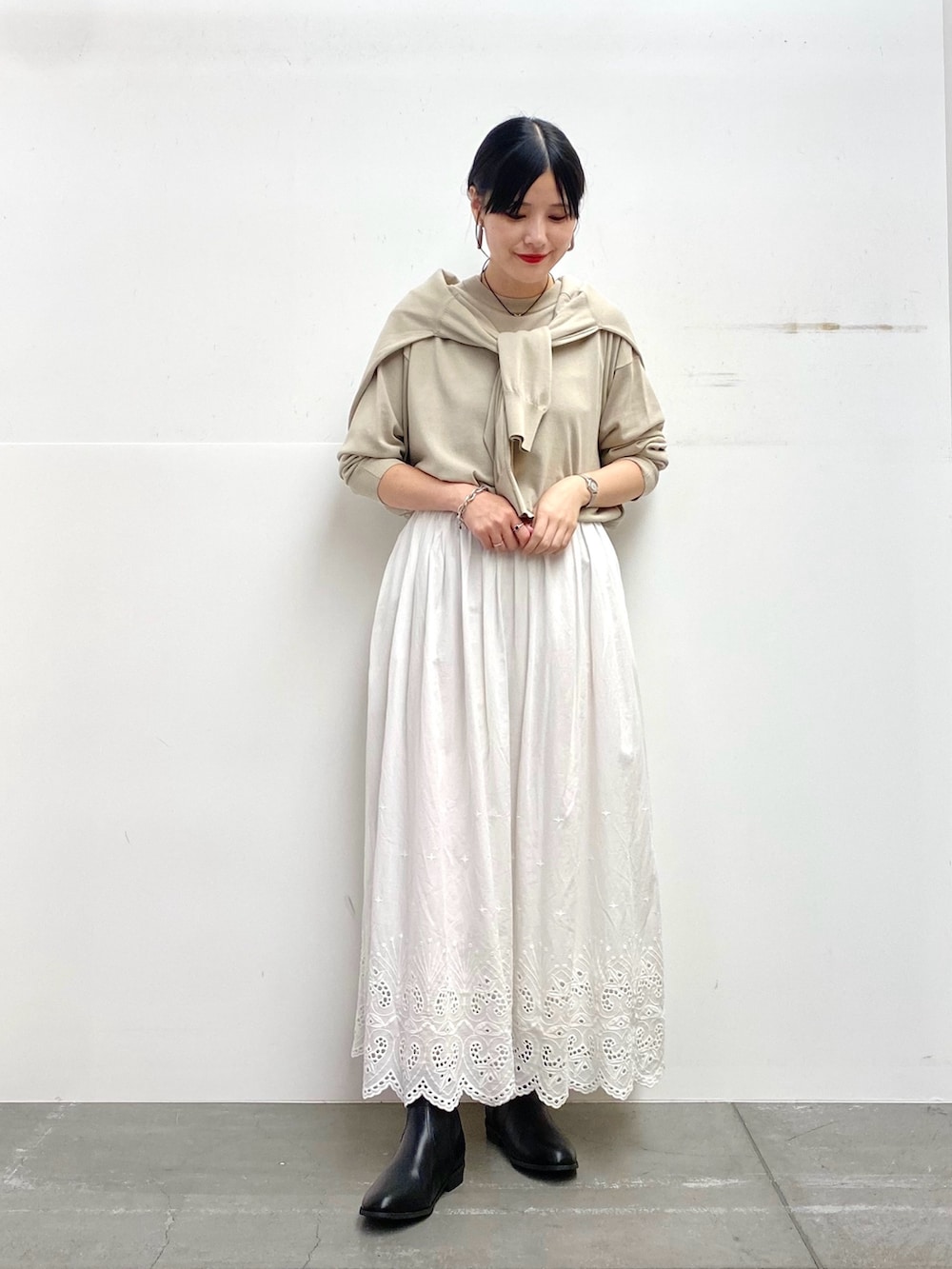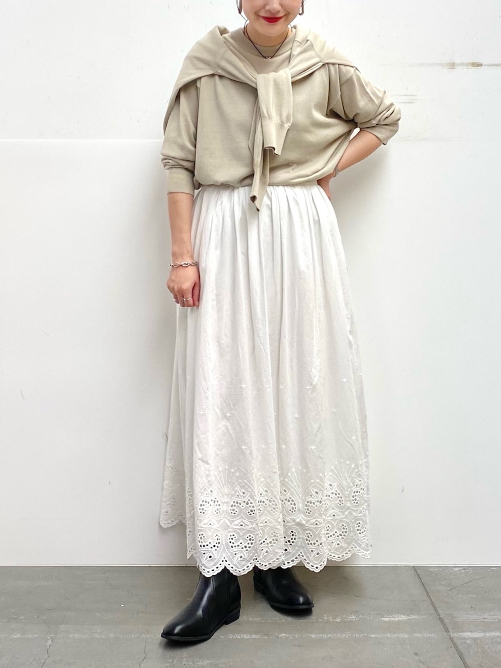 白のスカートを合わせてワントーンでまとめました!