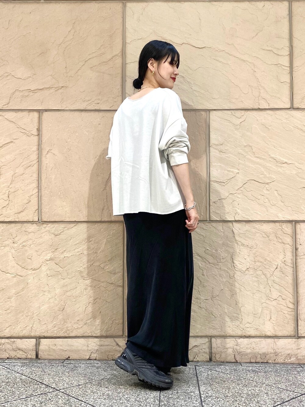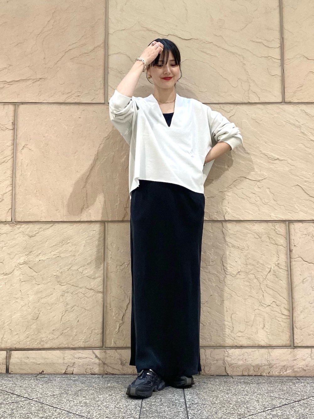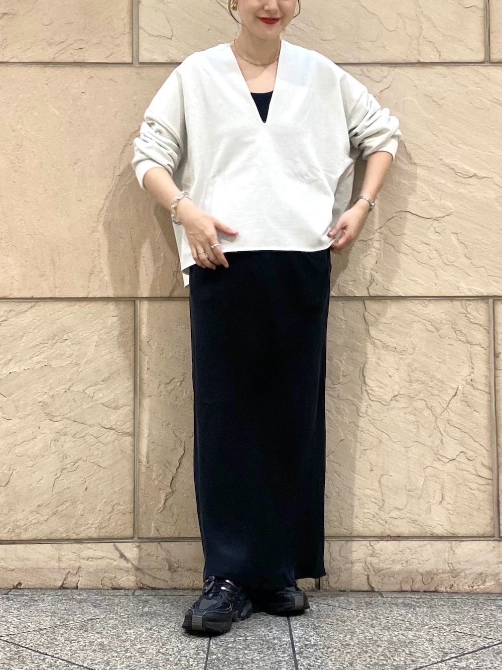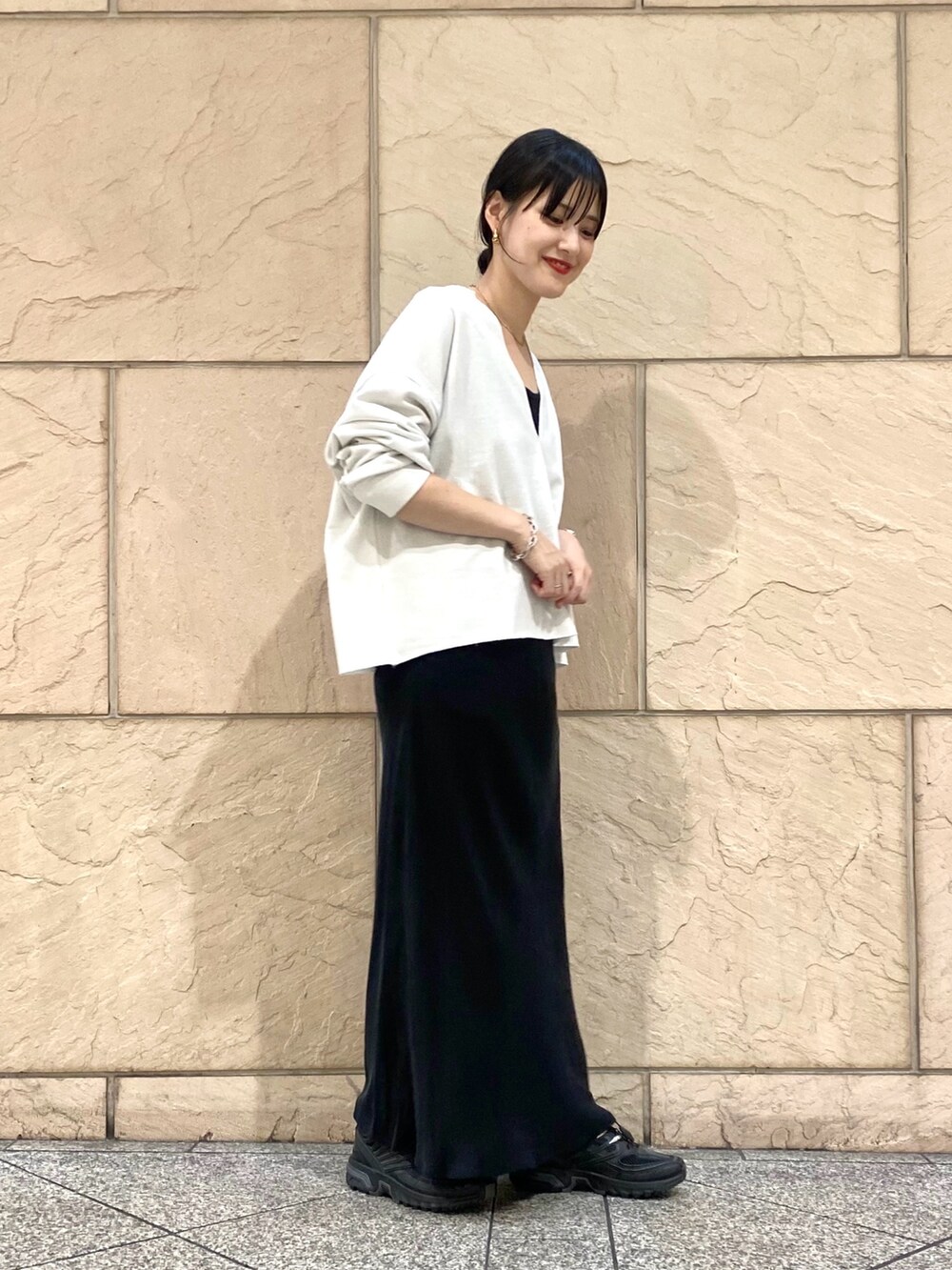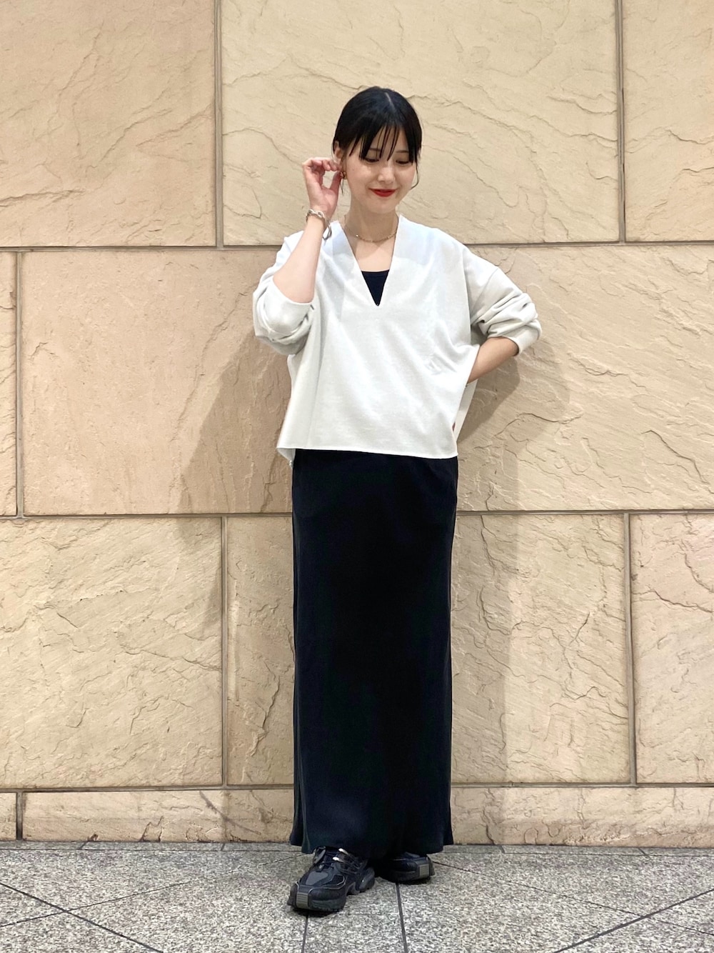 Vネックなのもきれいめな印象で着られるので、ラフにならずおしゃれ見えします◎