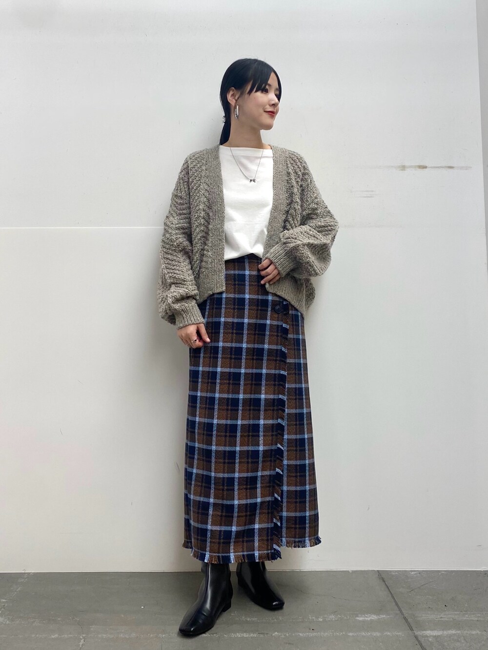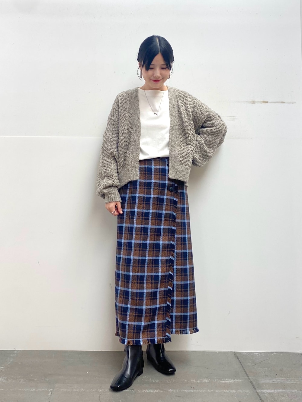 チェックのスカートは足のラインを拾わないくらいのシルエットできれいめカジュアルにお召しいただけます!